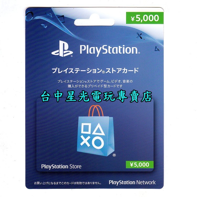 SONY PSN 點數卡 預付卡 日本帳號 5000點 日帳 電子錢包 儲值卡 實體卡 可線上發卡【台中星光電玩】