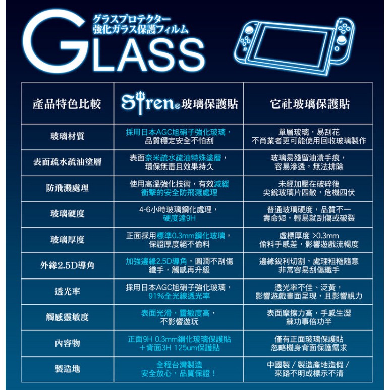 Nintendo Switch Siren 任天堂 主機專用 9H鋼化玻璃螢幕保護貼 【含背面貼】台中星光電玩