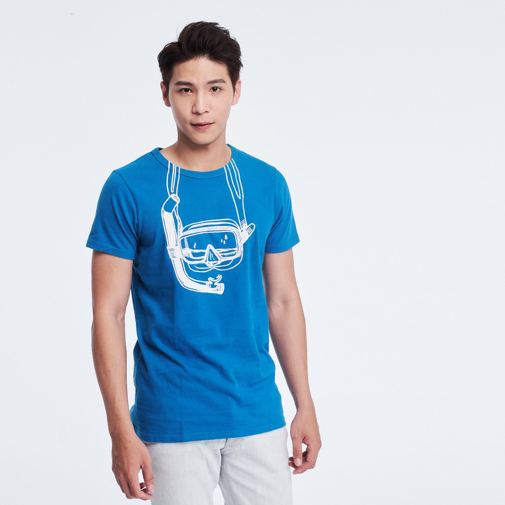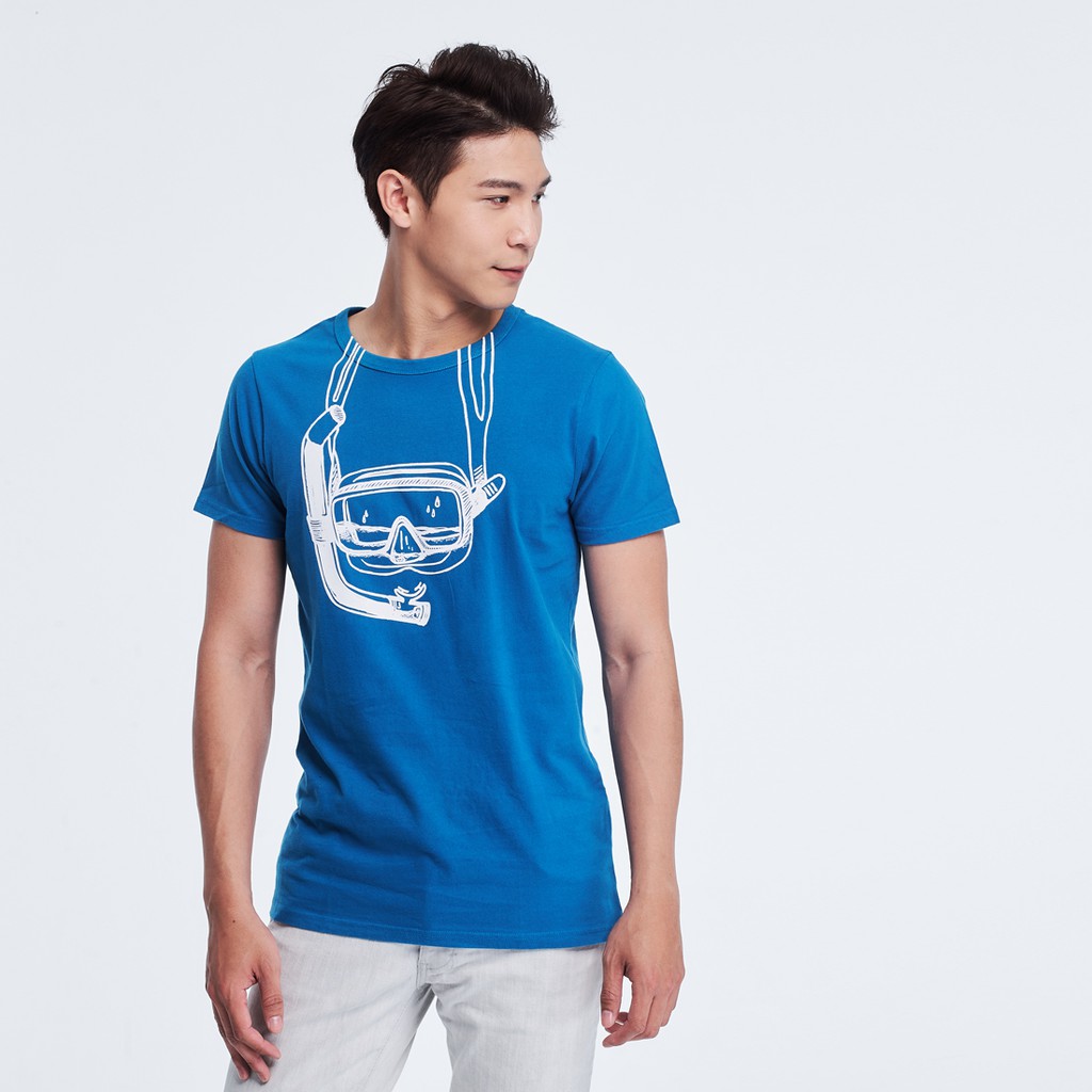 潛水鏡水洗厚磅短袖純棉修身男T 海藍