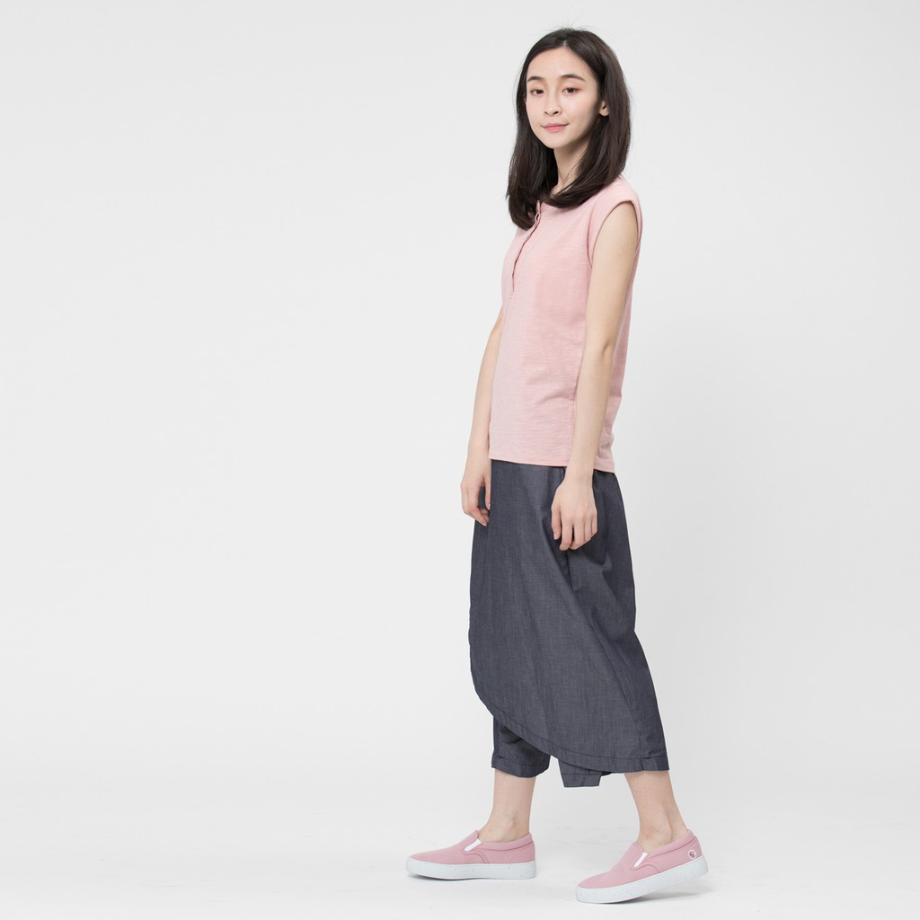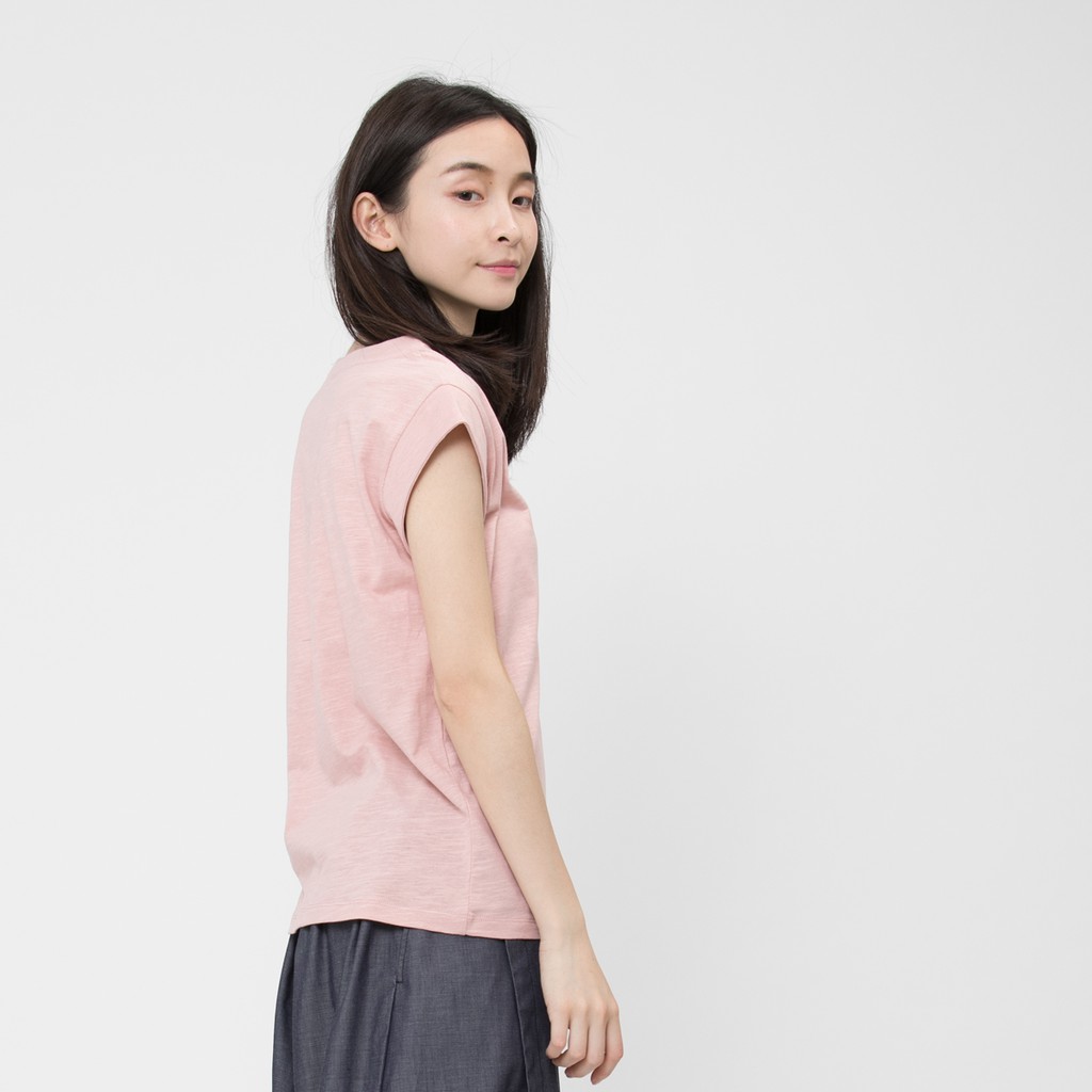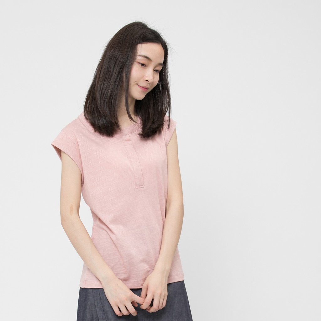 竹節棉半襟小蓋袖透氣上衣T恤櫻花粉