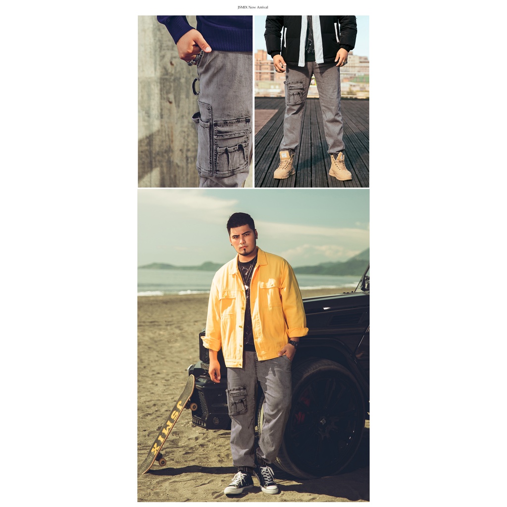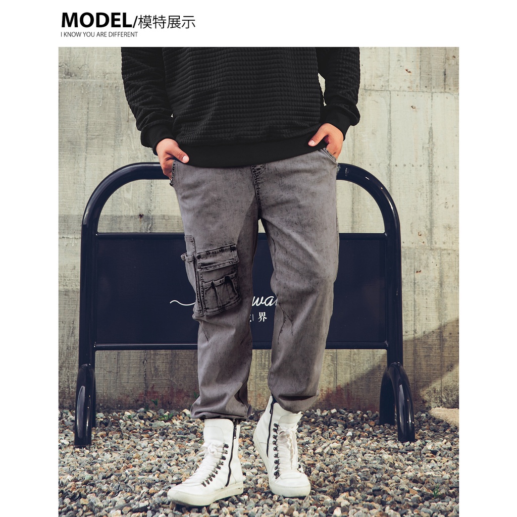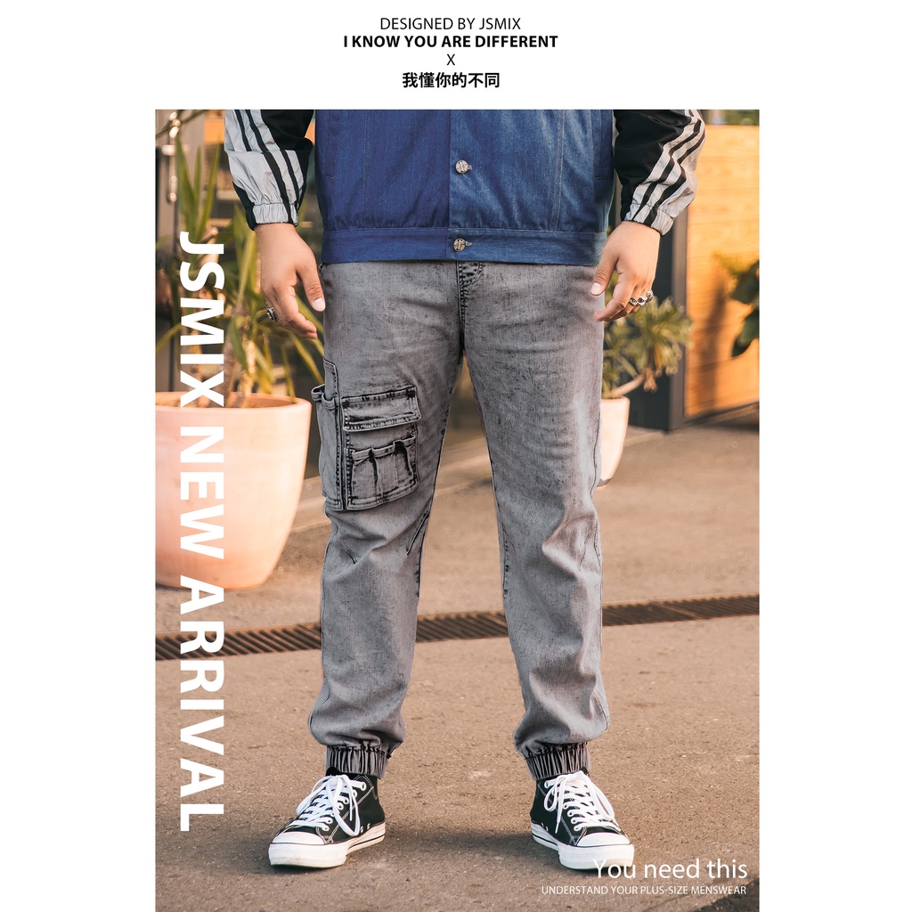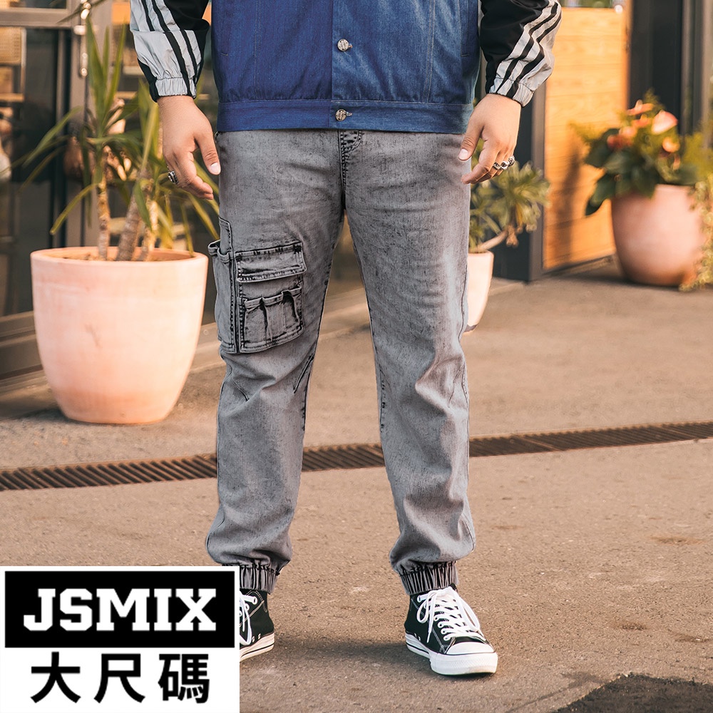 JSMIX大尺碼服飾-大尺碼彈力仿舊水洗牛仔縮口褲【24JN7167】