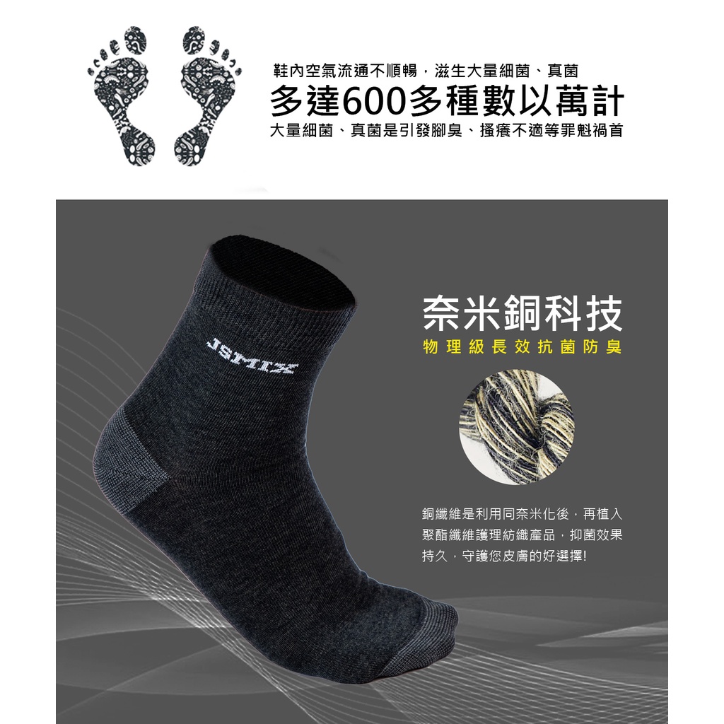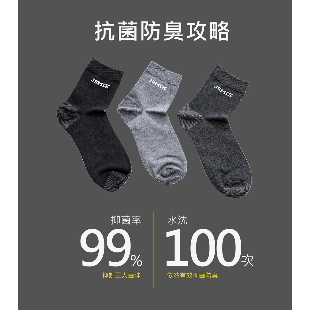 JSMIX大尺碼服飾-大尺碼抗菌防臭彈性中長襪(共3色)