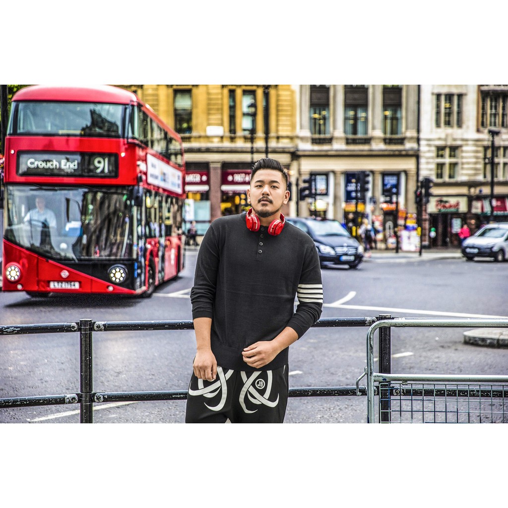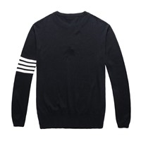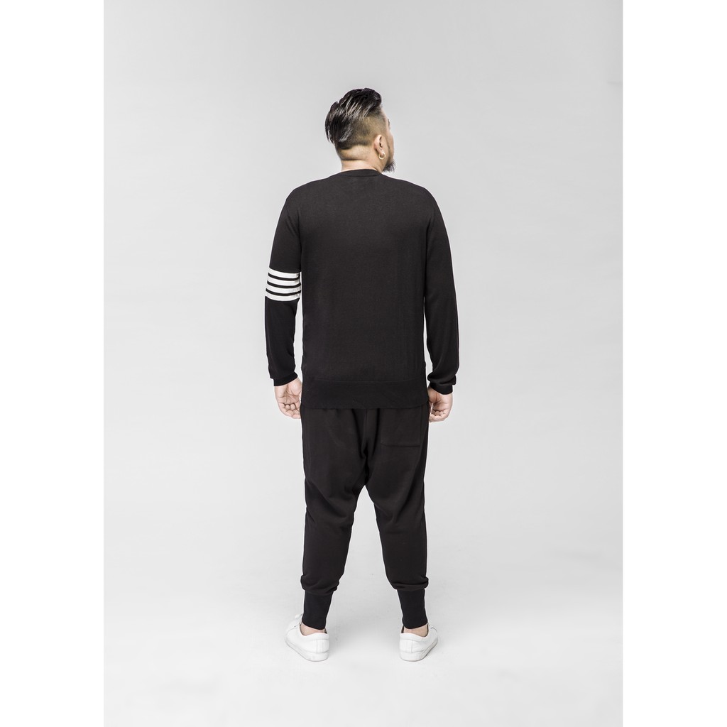 JSMIX大尺碼服飾- 單邊撞色條紋黑色開領純棉長袖針織衫 73JO0653