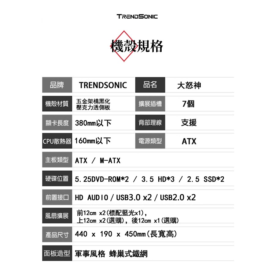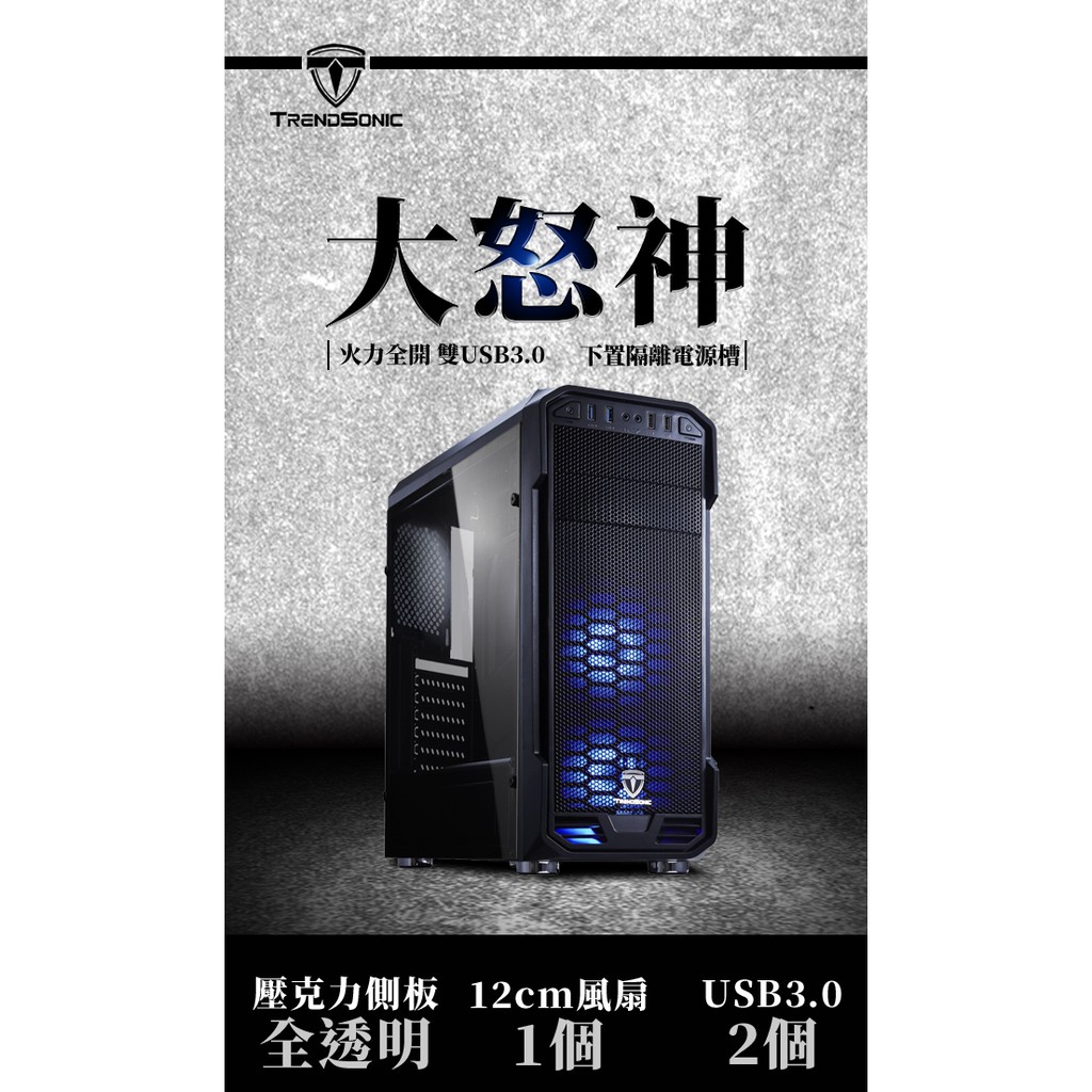 TrendSonic 大怒神ATX USB3.0 電腦機殼/內附藍光風扇×1/全透明壓克力側板/可裝光碟機