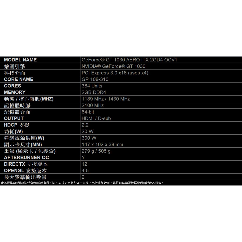 微星MSI GT 1030 AERO 2GD4 OCV1 PCI-E顯示卡
