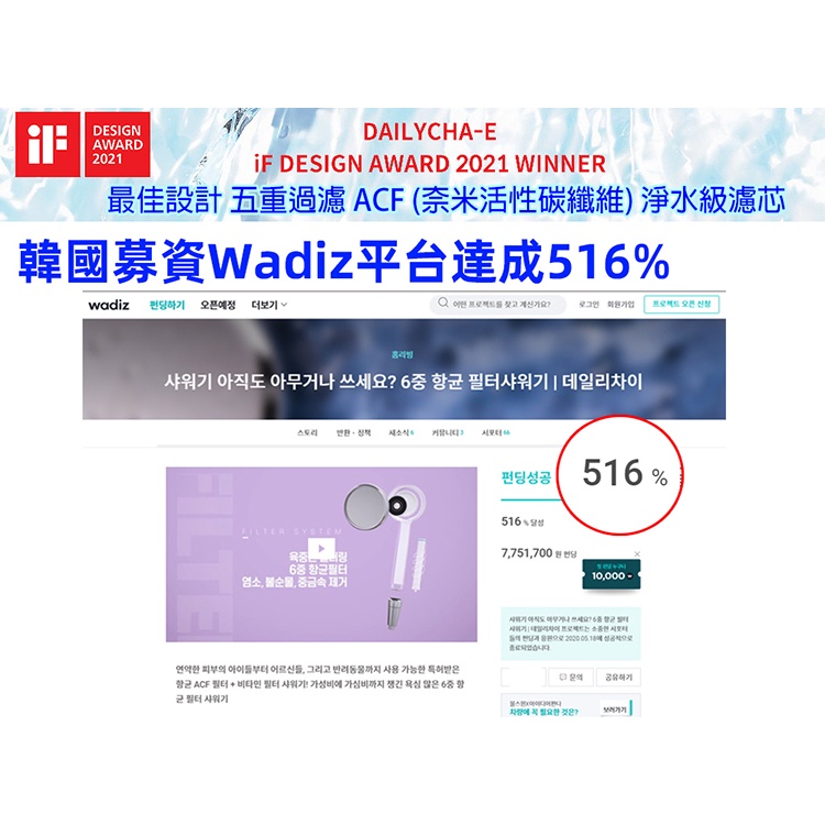 【韓國 DailyCha-E 每日淨】 ACF濾菌除氯加壓蓮蓬頭