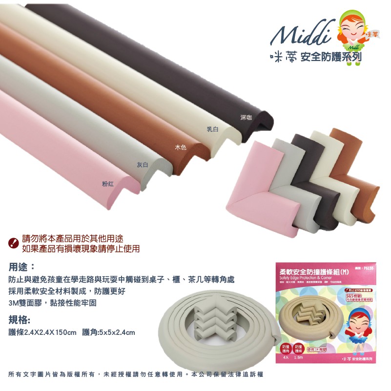 Middi咪蒂 柔軟安全防撞護條組(M)150cm+護角4入