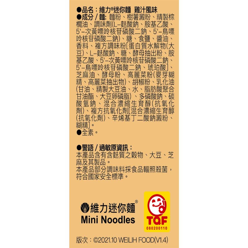 維力迷你麵 雞汁風味4包入