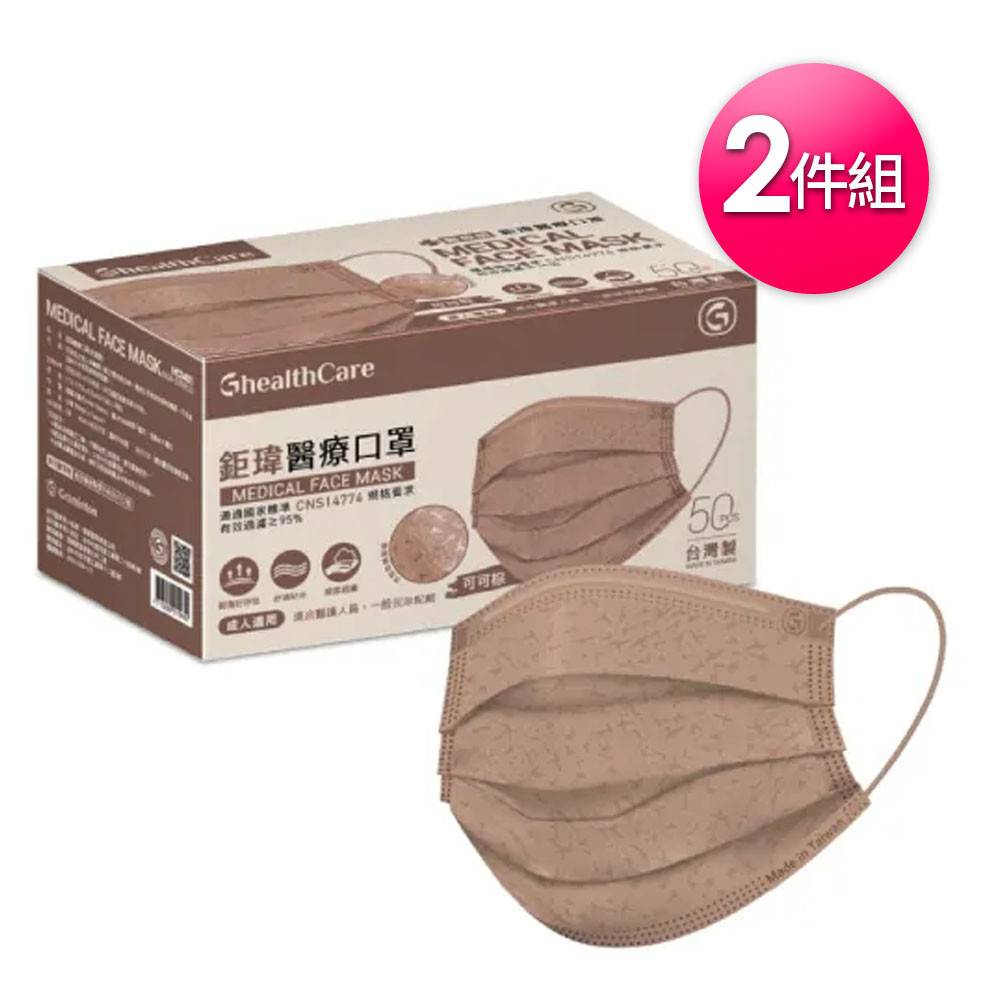 鉅瑋醫療口罩50入-可可棕x2件組