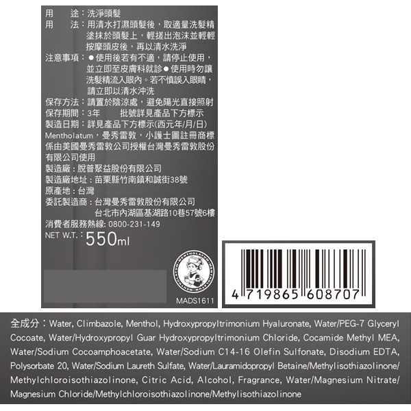 Mentholatum 曼秀雷敦抗屑冰涼洗髮精550ml