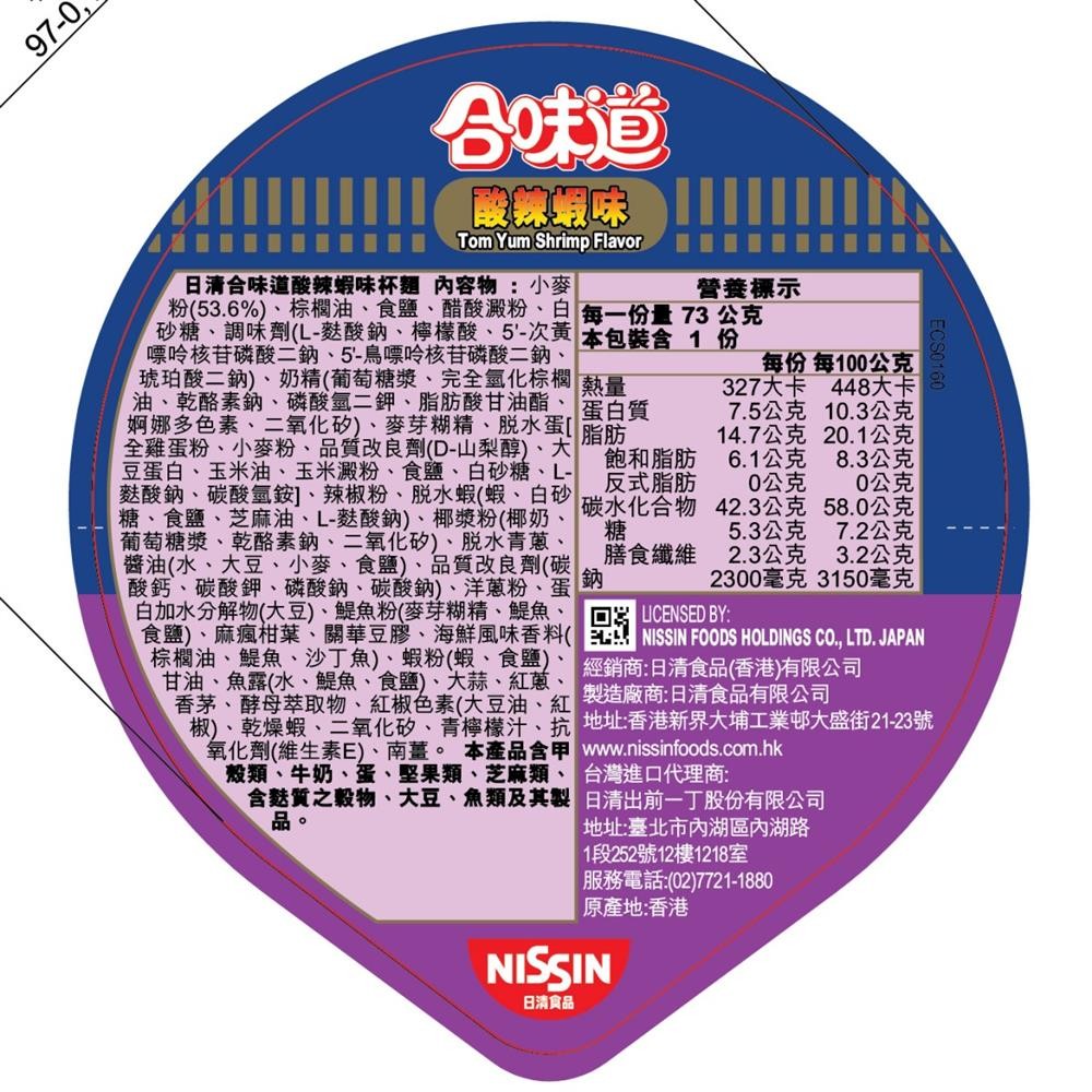 NISSIN 日清合味道酸辣蝦味杯麵(74g)