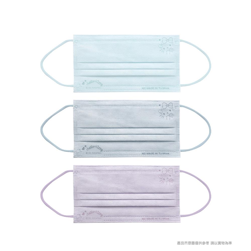 【台歐】Hello Kitty鋼印成人平面醫療口罩-藍紫色系款(30片/盒)