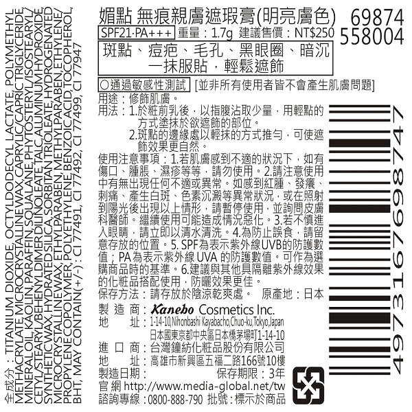 media 媚點無痕親膚遮瑕膏(明亮膚色)