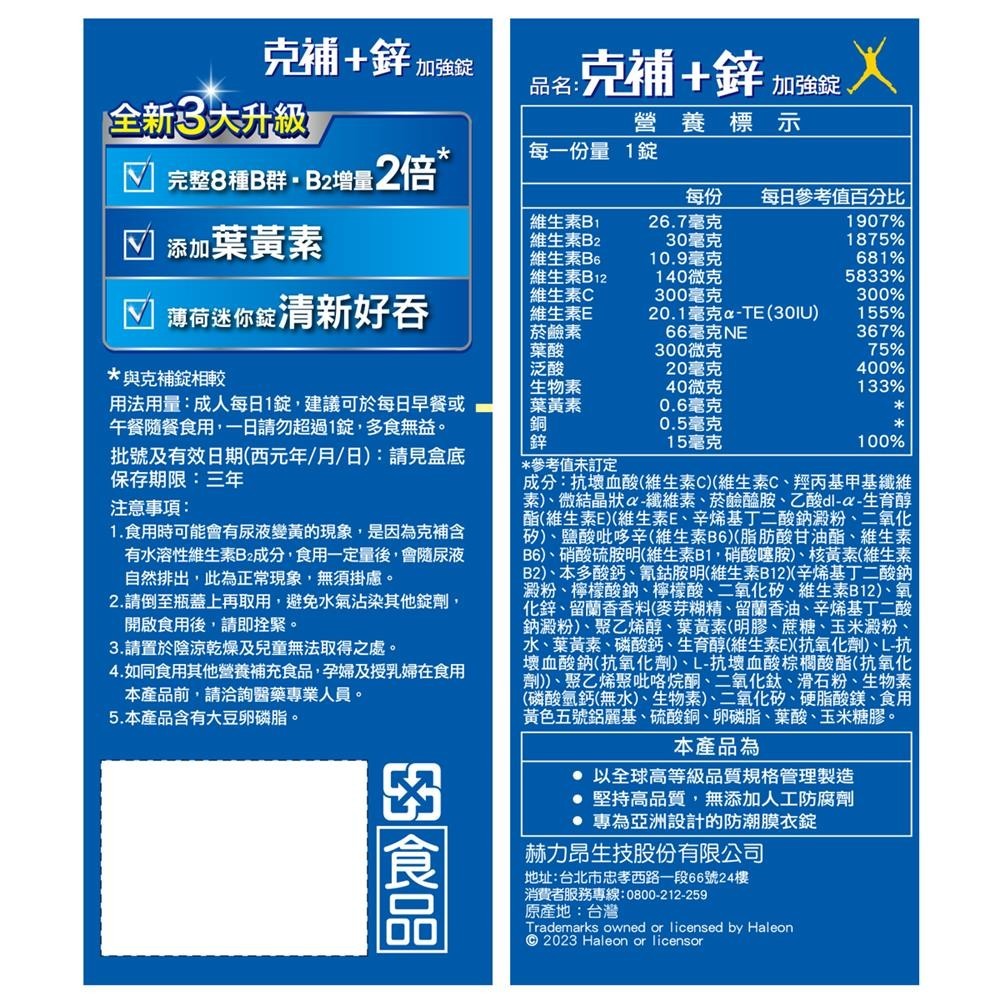 克補B群 +鋅加強錠30錠(包裝隨機)