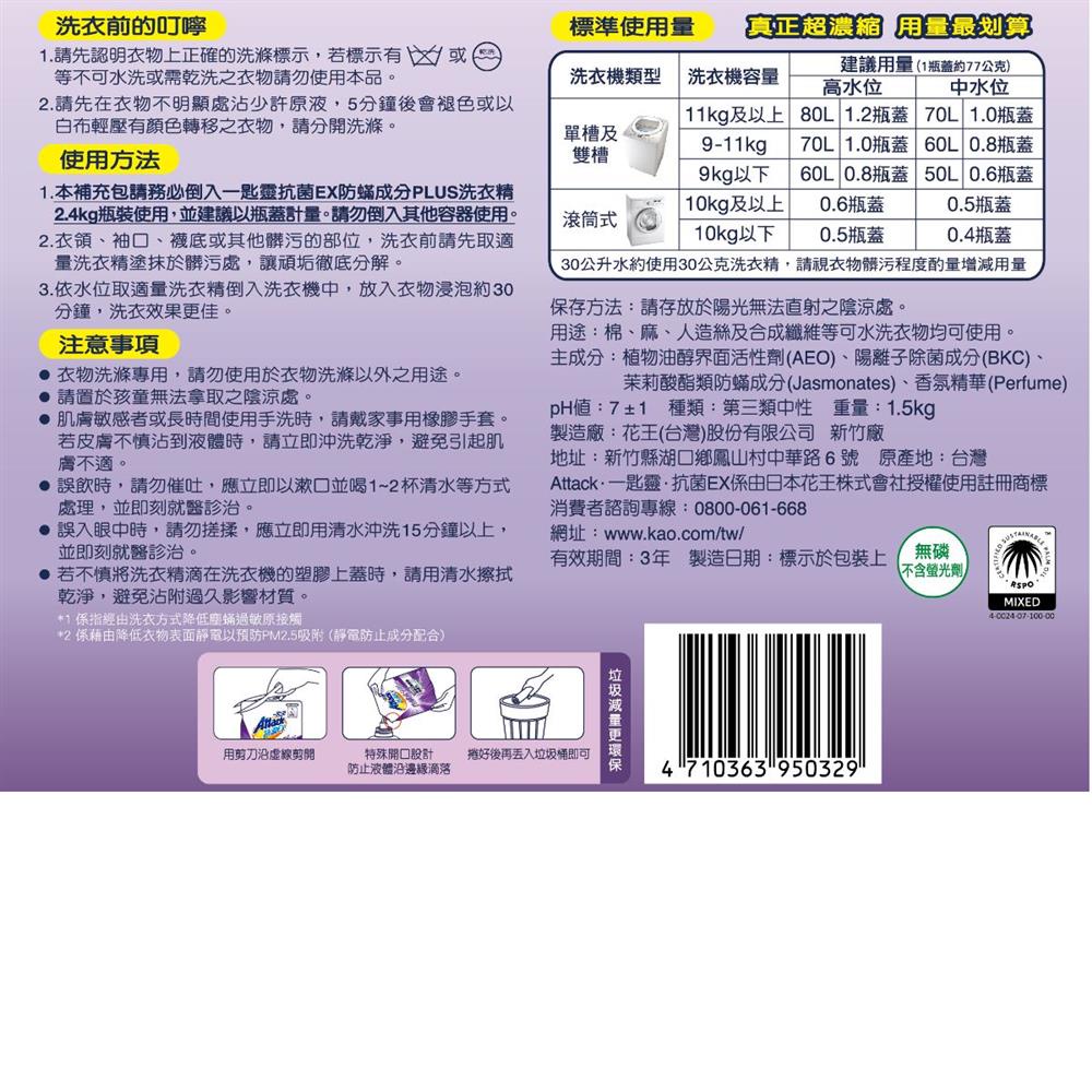 一匙靈抗菌EX防螨成分PLUS洗衣精1.5KG