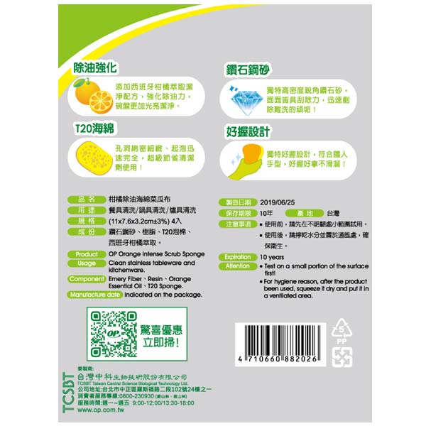 OP 柑橘抗菌菜瓜布.4入【任2件5折】