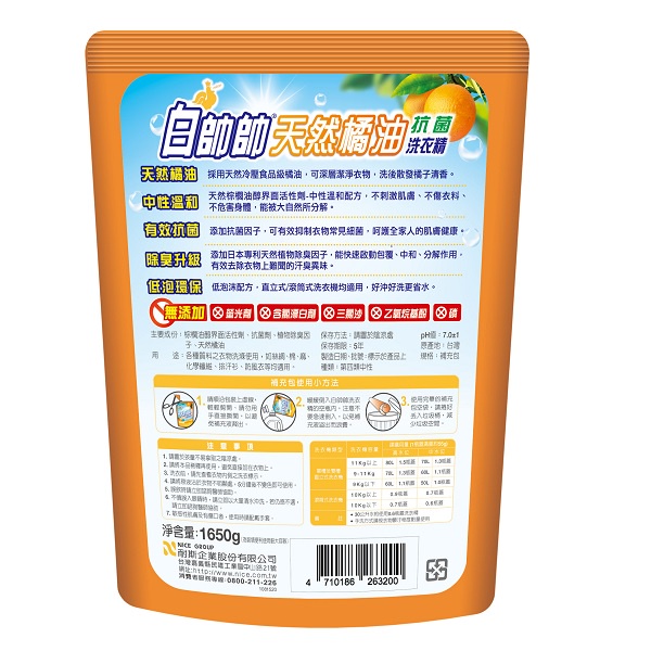 白帥帥天然橘油抗菌洗衣精補充包1650g