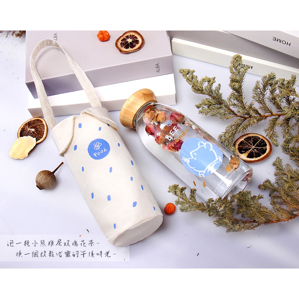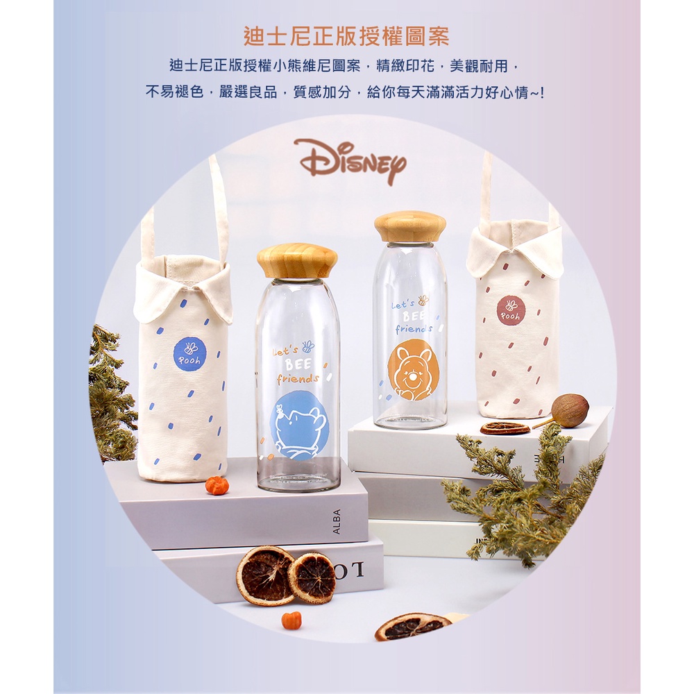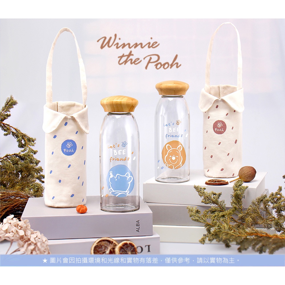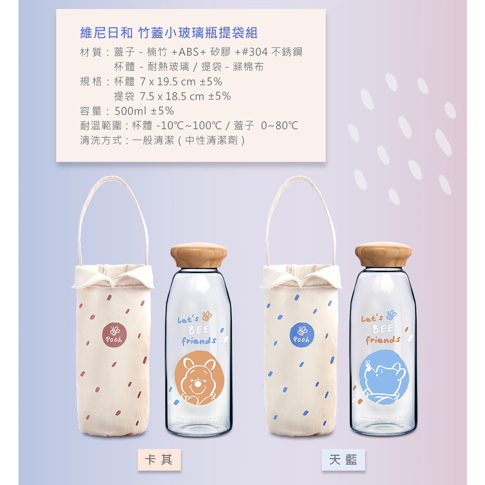 【Disney 迪士尼】維尼日和 竹蓋小玻璃瓶提袋組(500ml)|2色任選
