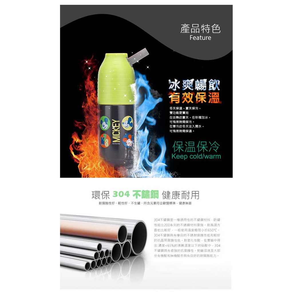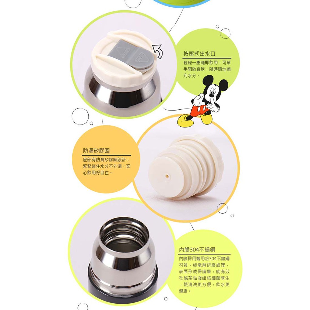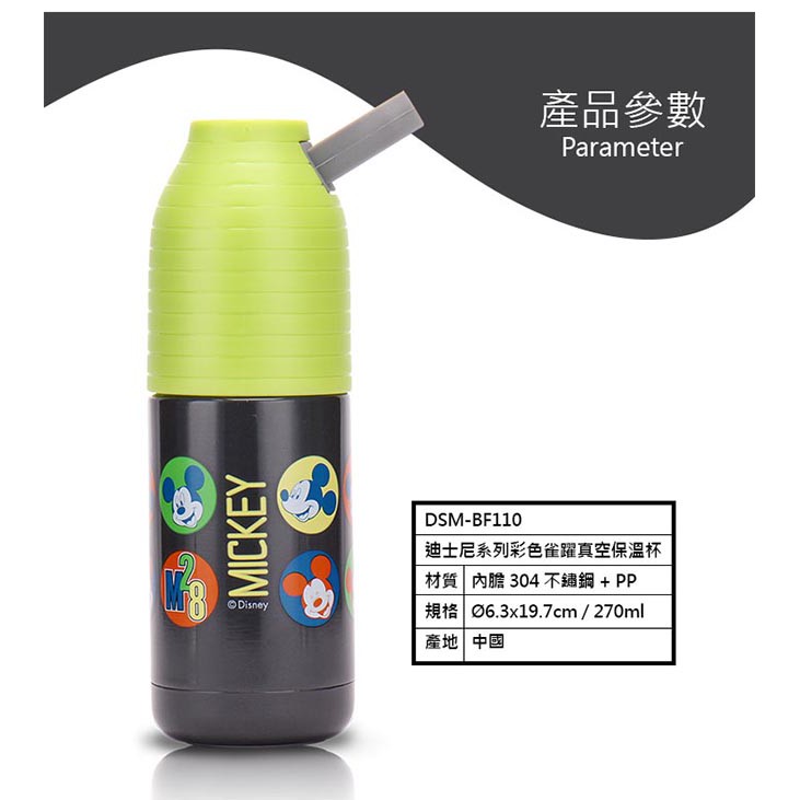 【Disney 迪士尼】米奇彩色雀躍304不鏽鋼真空保溫瓶(270ml)