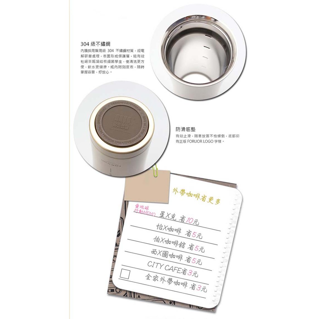 【法國FORUOR】金銀物語304不鏽鋼真空隨行保溫瓶(500ml)