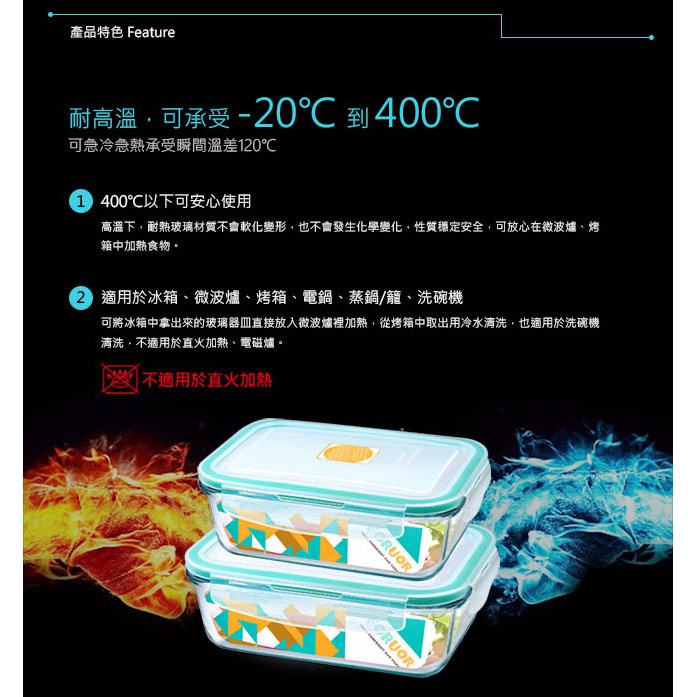 【法國FORUOR】焦點耐熱玻璃保鮮盒提袋組(550ml+800ml)