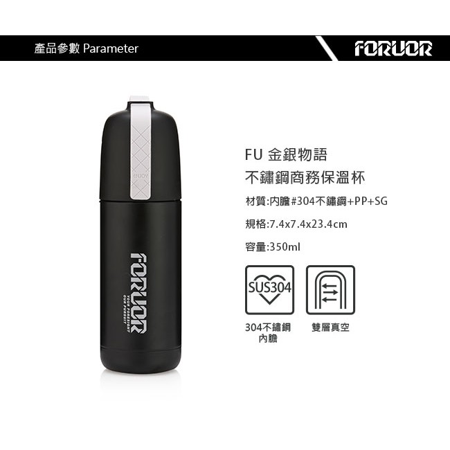 【法國FORUOR】金銀物語 304不鏽鋼提手真空保溫瓶(350ml)