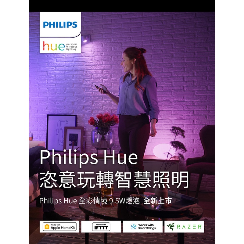 Philips 飛利浦 Hue 全彩情境 9.5W燈泡入門套件組 含橋接器 (PH02N)