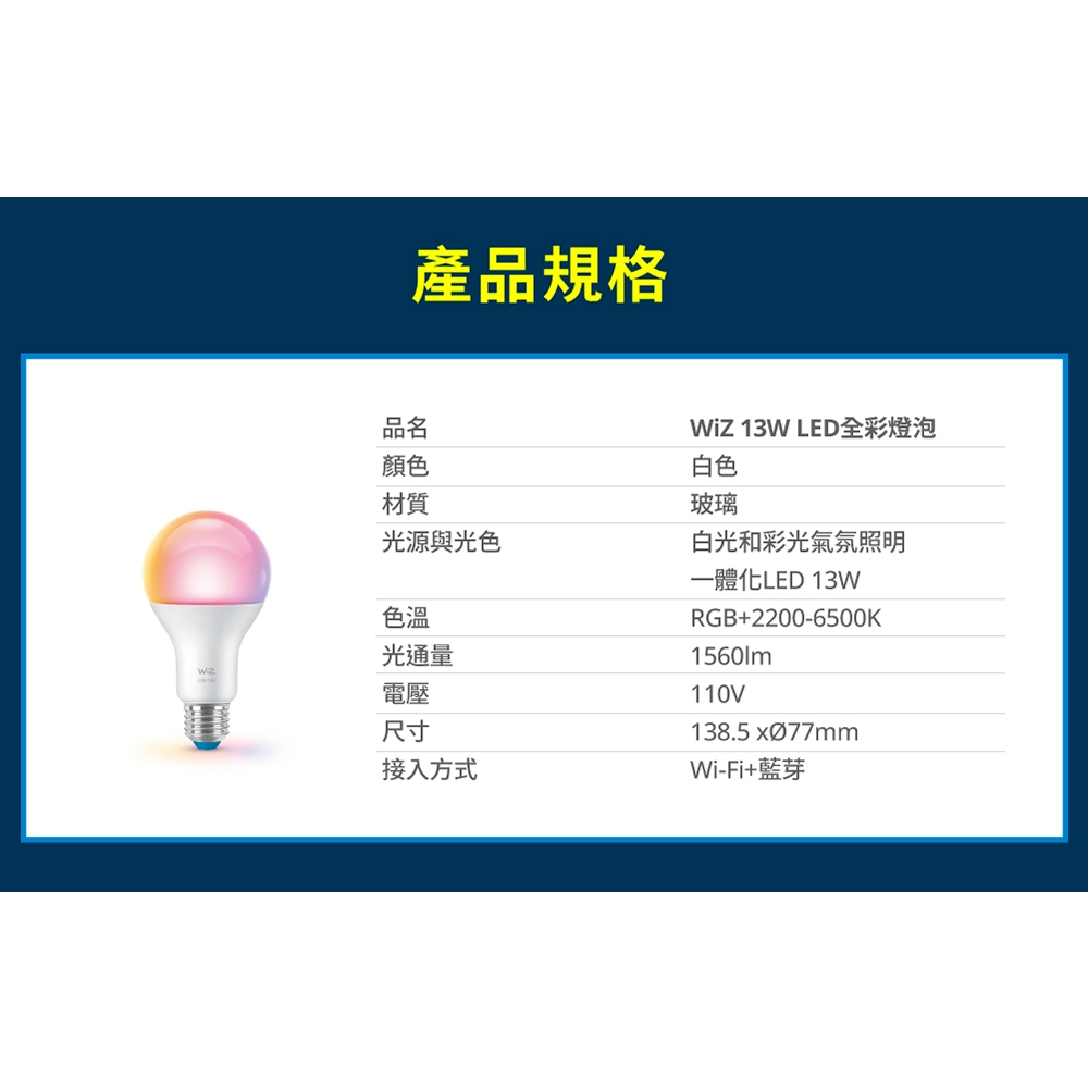 Philips 飛利浦 WiZ 13W LED全彩燈泡 (PW019)