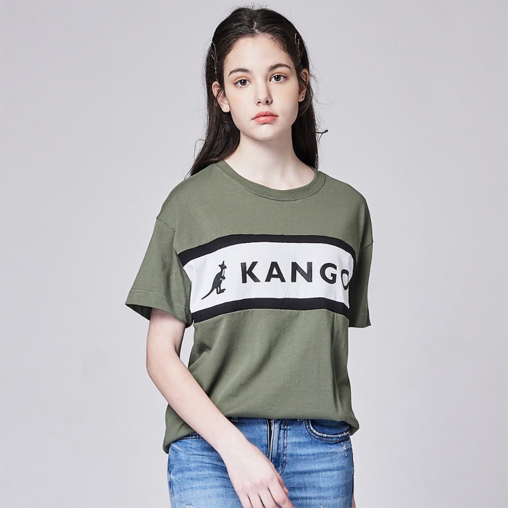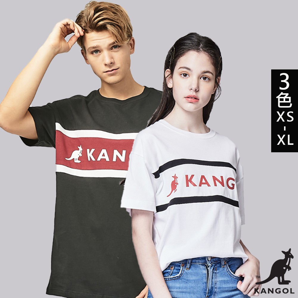 KANGOL 撞色拼接LOGO短T-白色/綠色/黑色/ 純棉tee 小標t 素t 男生t 女生t 情侶短t