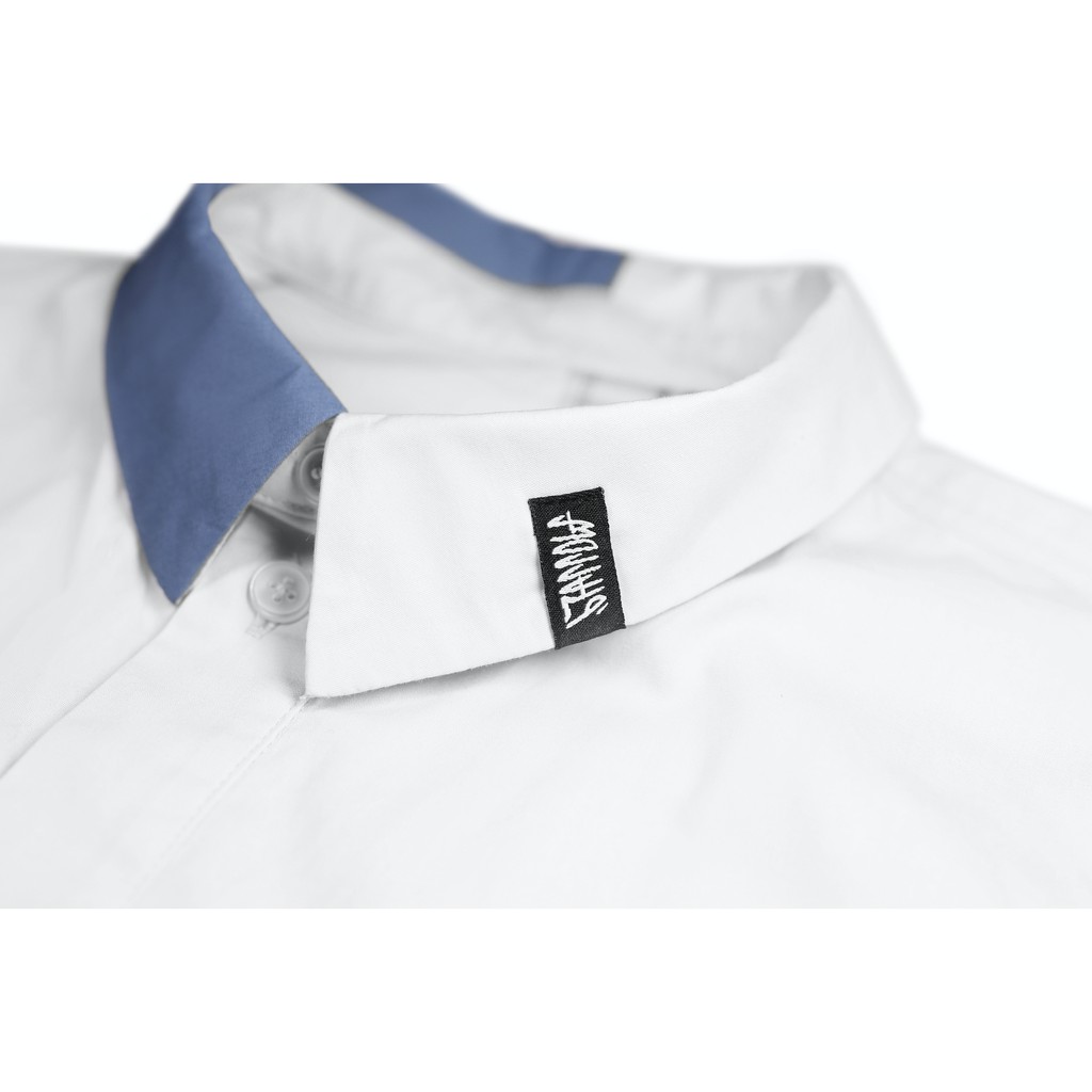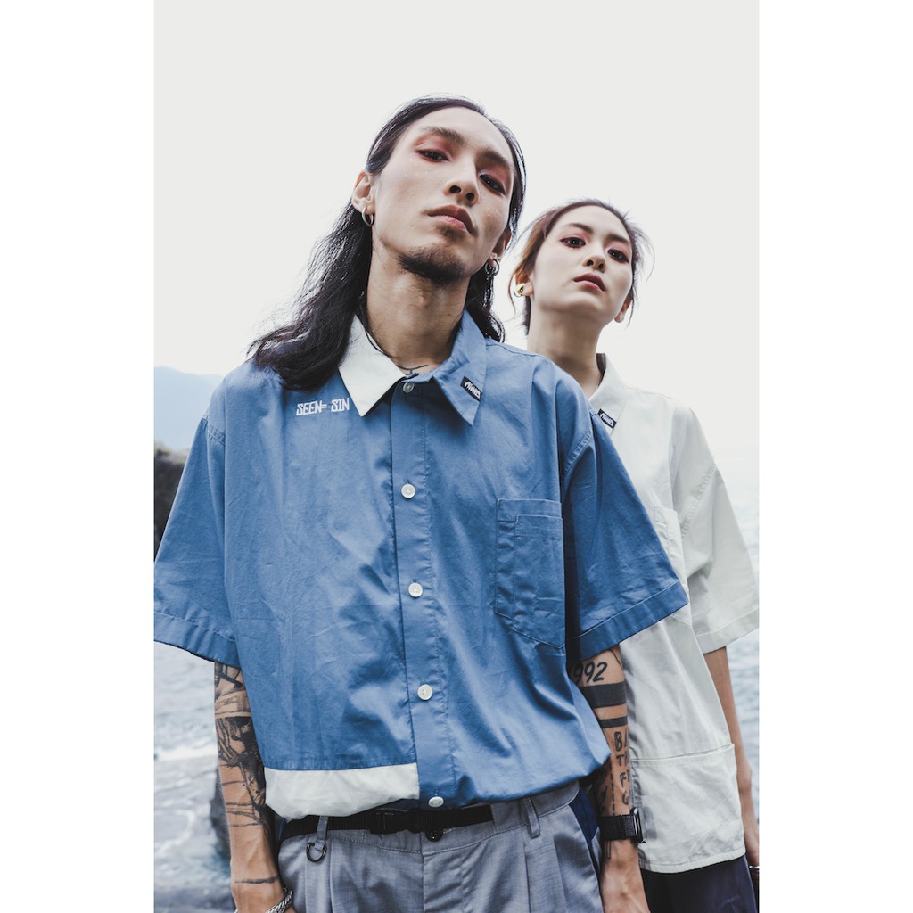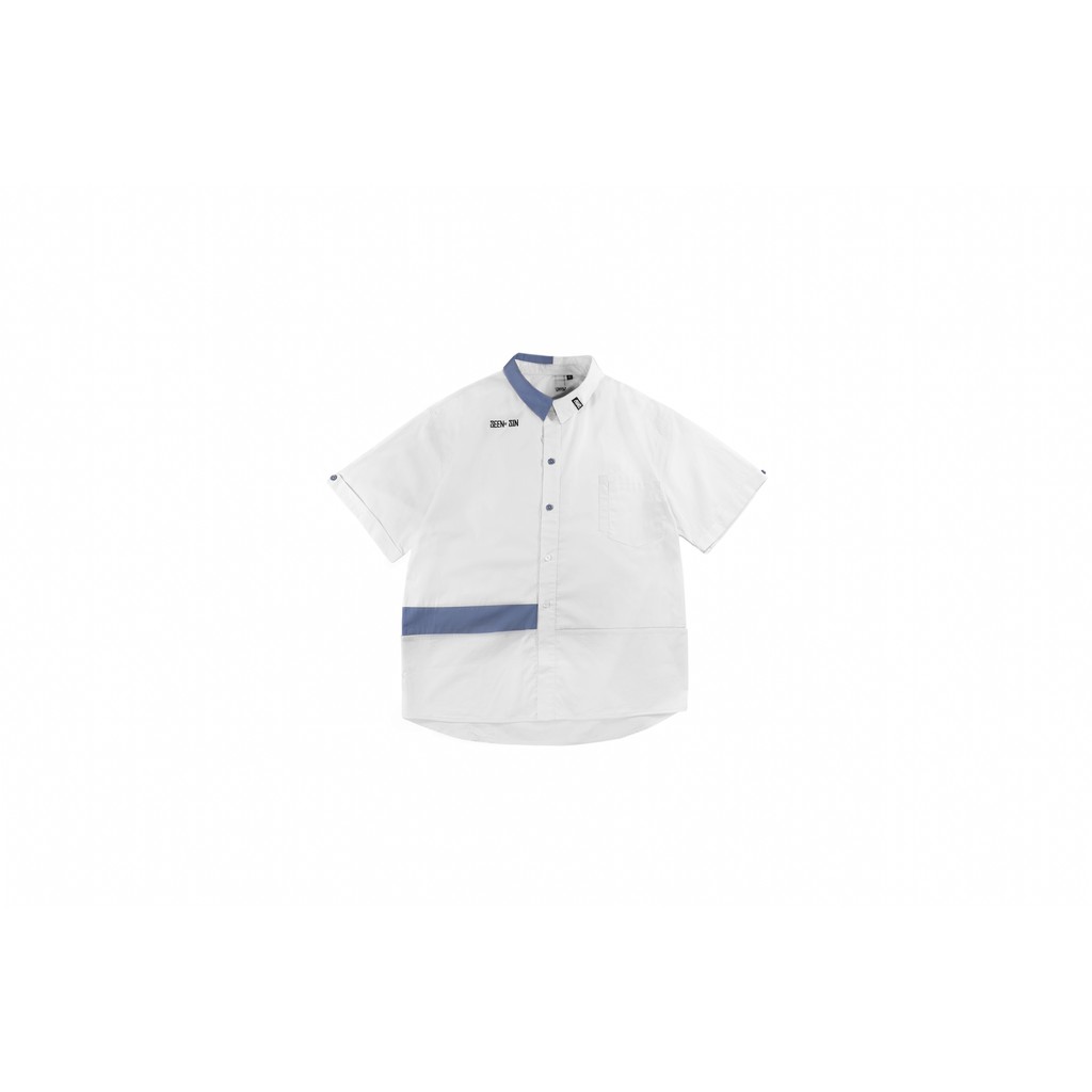 .67ARROW SEENER S_SHIRTS_襯衫 拼接 多口袋 藍色 白色 日系 寬版 正裝 混搭 outdoor