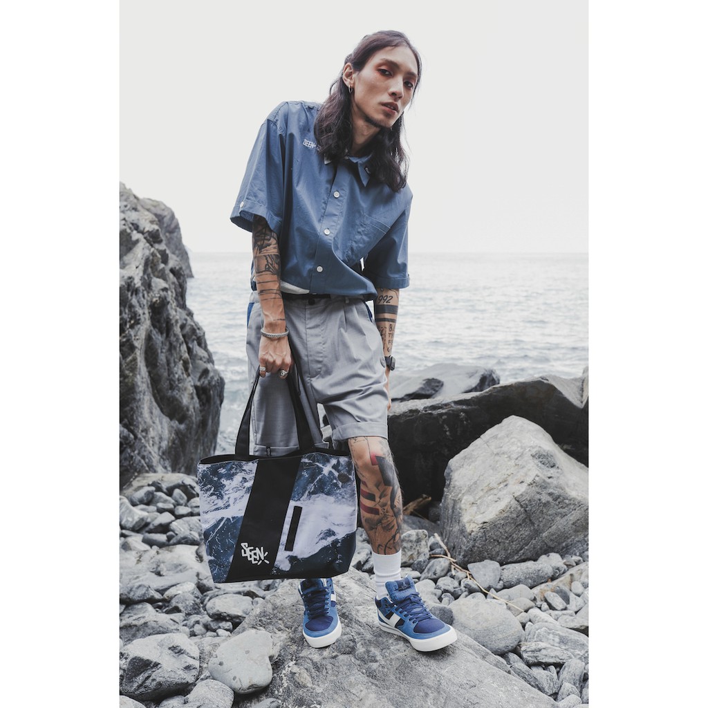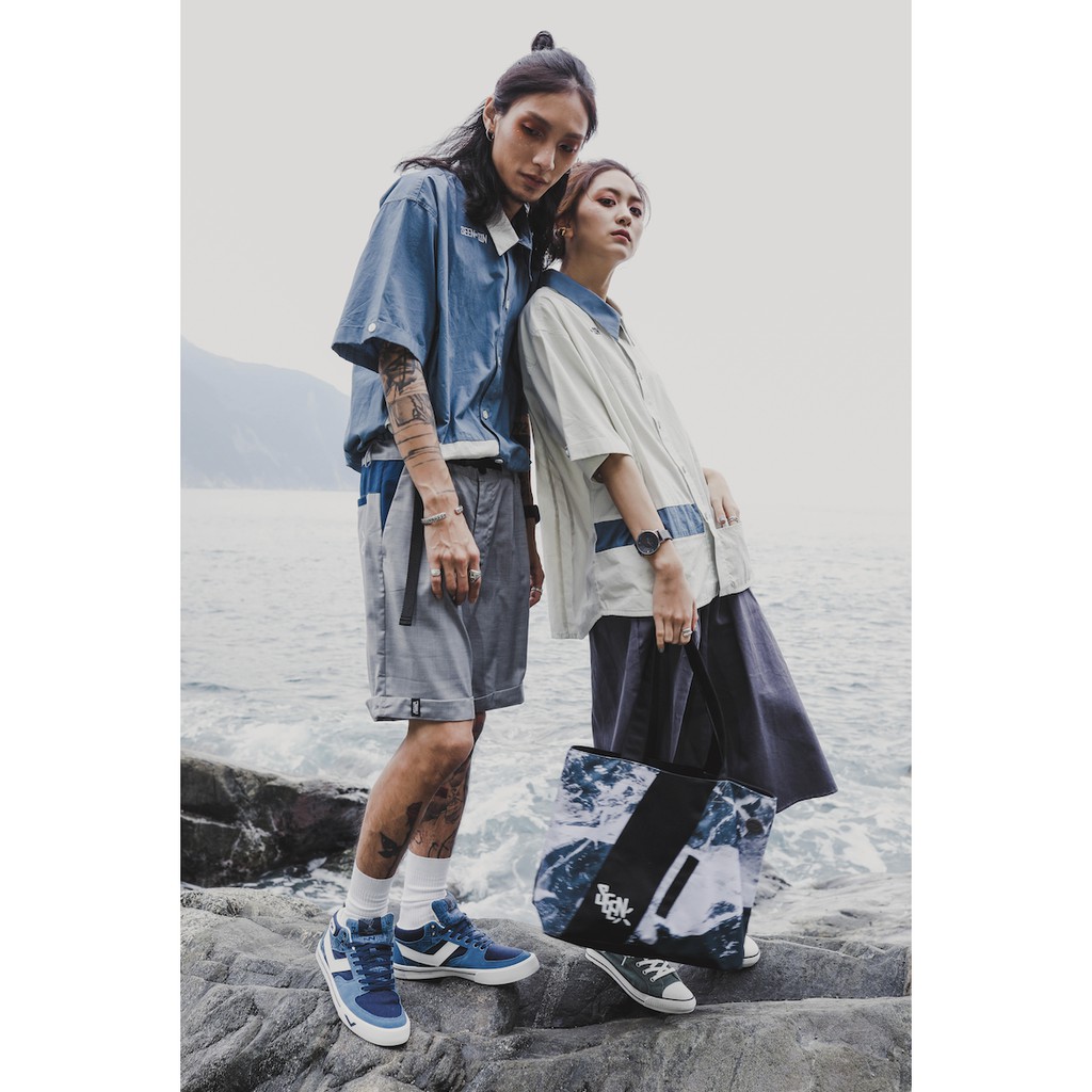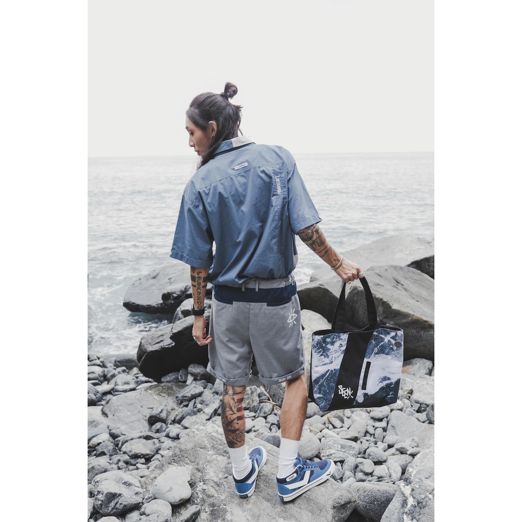 .67ARROW SEENER S_SHIRTS_襯衫 拼接 多口袋 藍色 白色 日系 寬版 正裝 混搭 outdoor