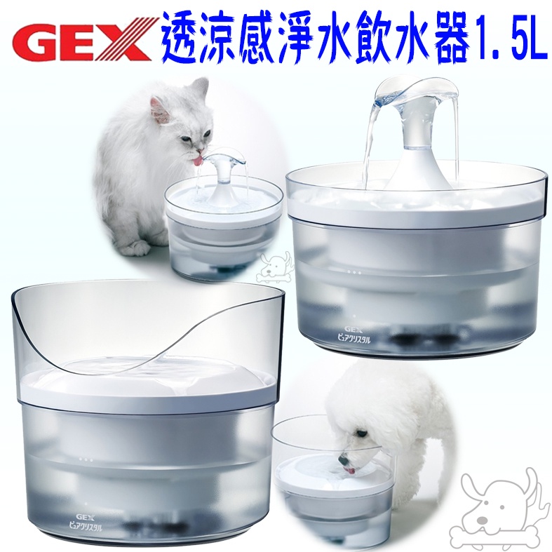 【GEX】透涼感淨水飲水器 1.5L 犬用 貓用 飲水器 透明系列 活水過濾 寵物飲水器-寵物執行長