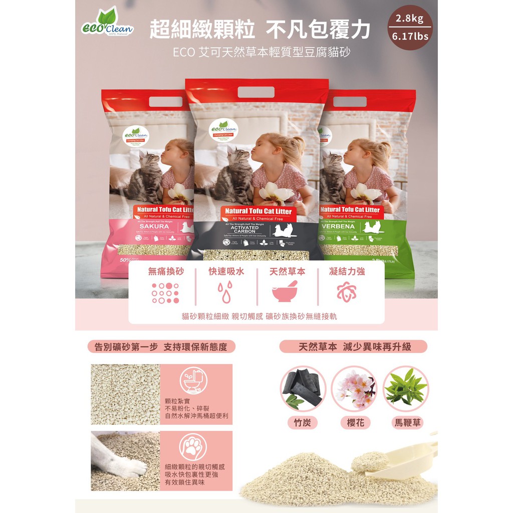 【艾可ECO】貓砂 天然草本 輕質型貓砂 豆腐砂 2.8kg 馬鞭草 活性炭 櫻花-寵物執行長