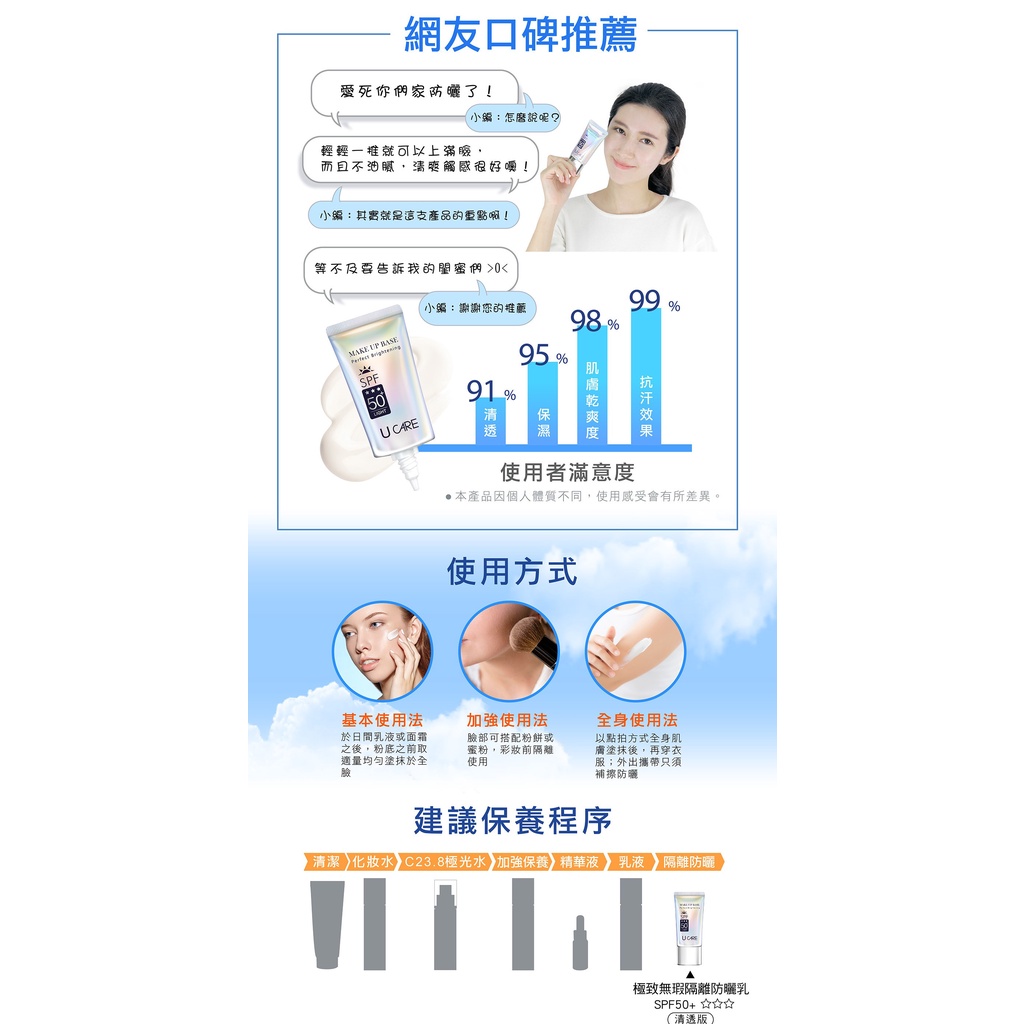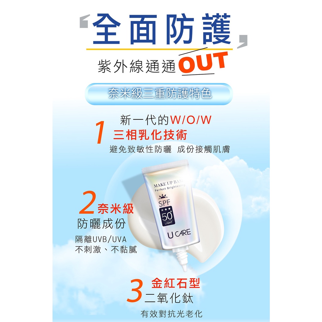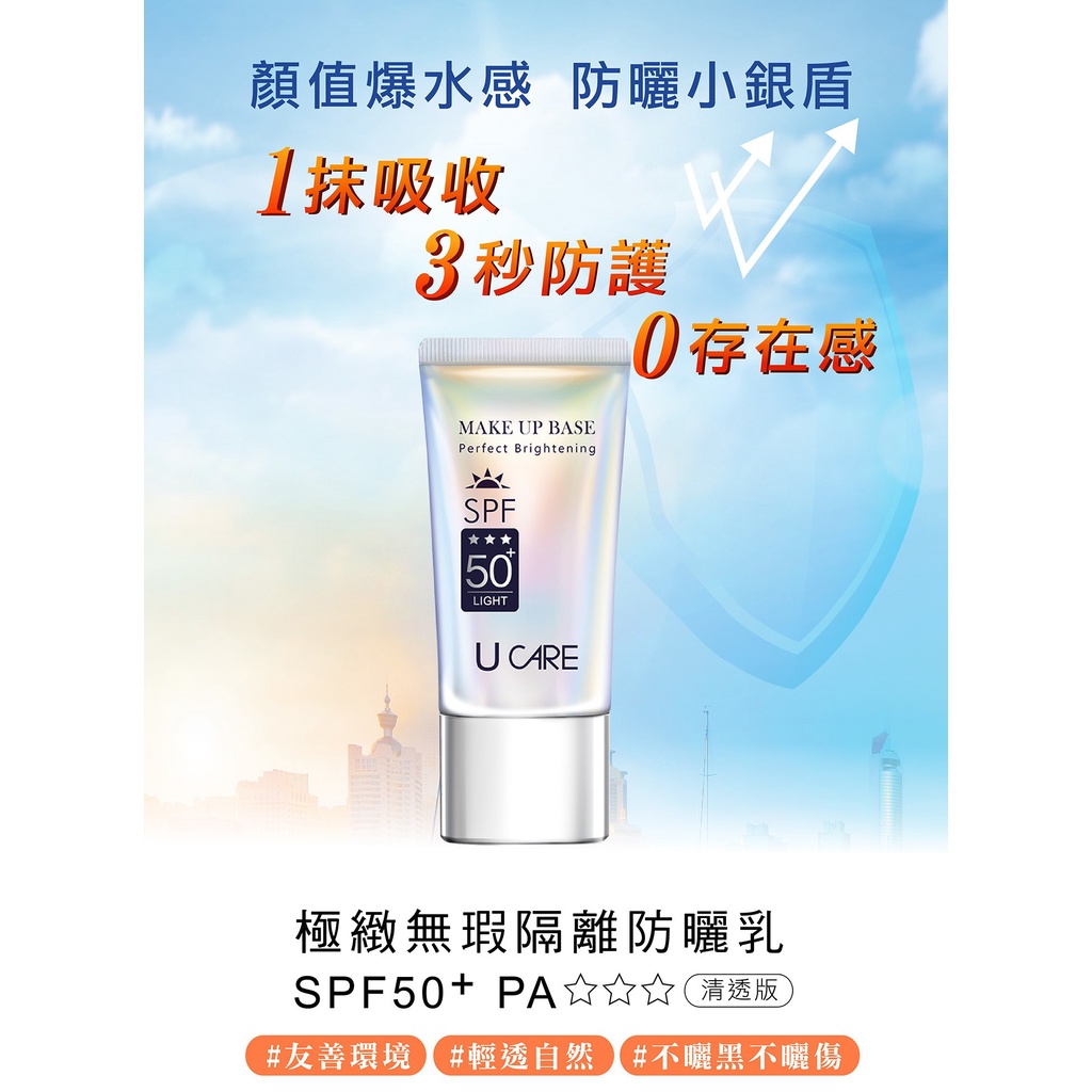【U CARE】極緻無瑕隔離防曬乳SPF50+ (清透版) 50ml |全球藥局