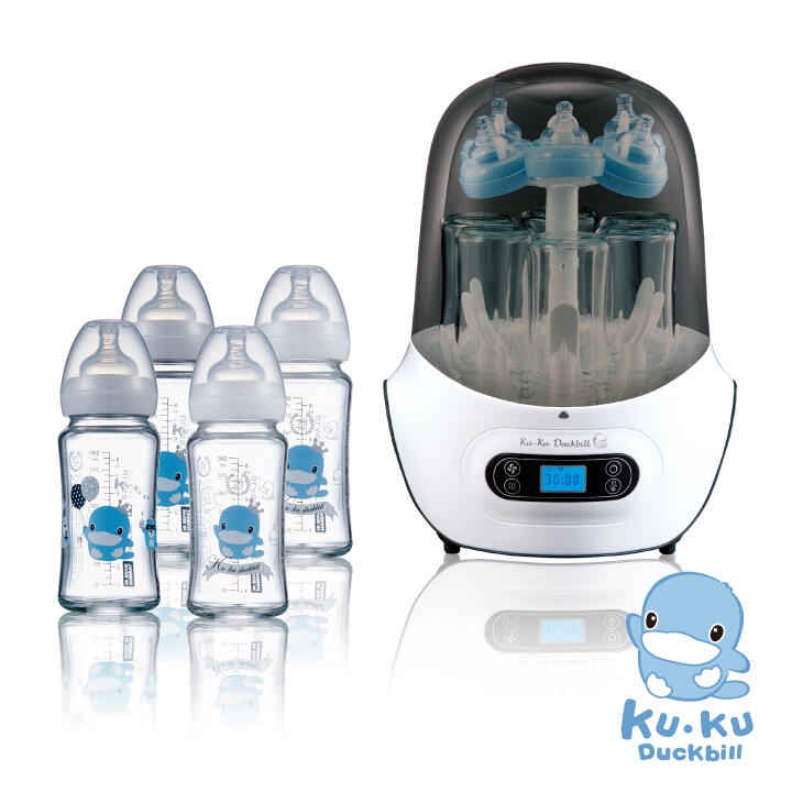 【KUKU】酷咕鴨 20週年紀念款-智慧型蒸氣烘乾消毒鍋+四隻奶瓶 |全球藥局