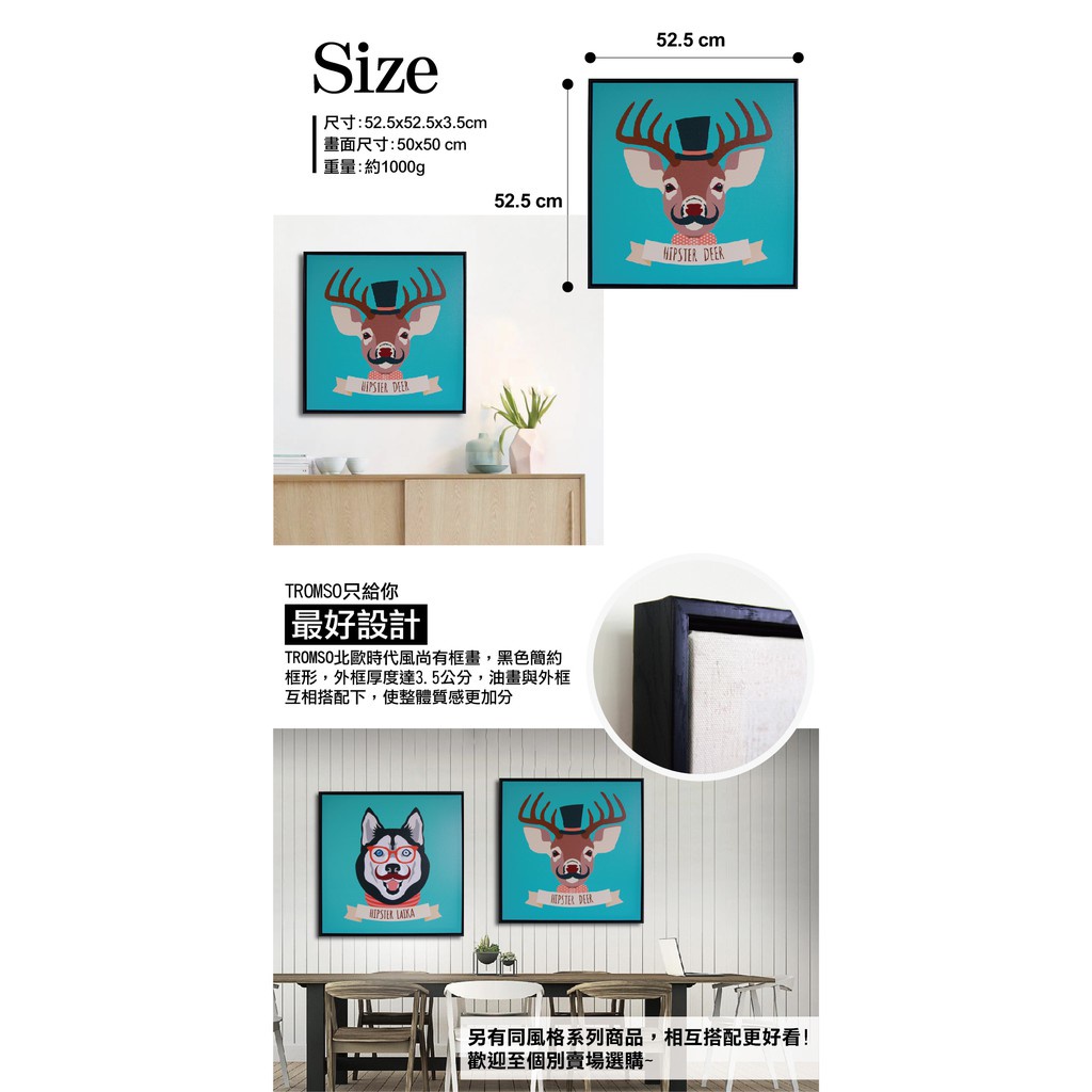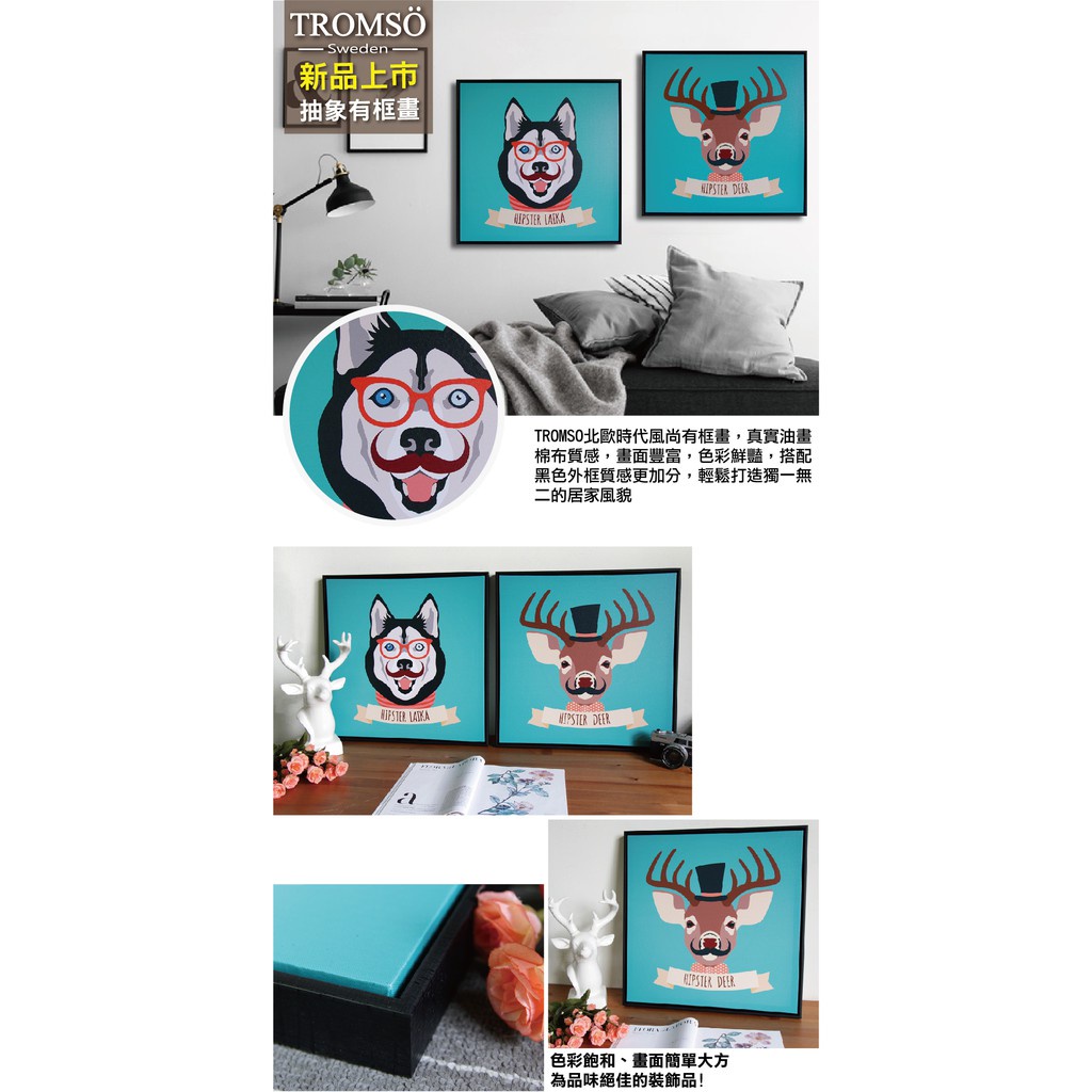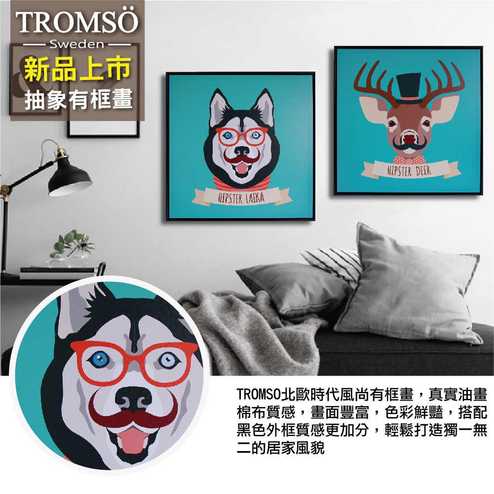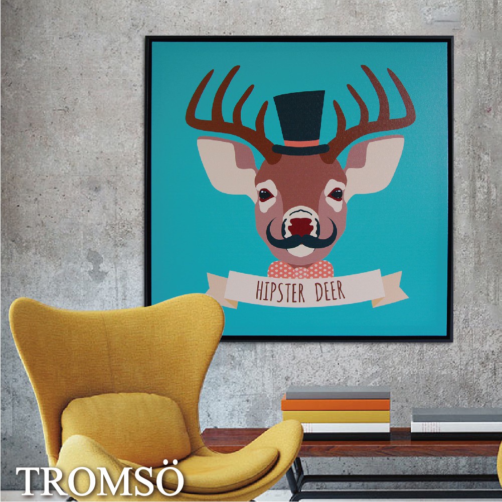 北歐有框畫 翹鬍子麋鹿 【TROMSO】/ WA008(50x50cm) 台灣現貨 插畫兒童房【H0313058】