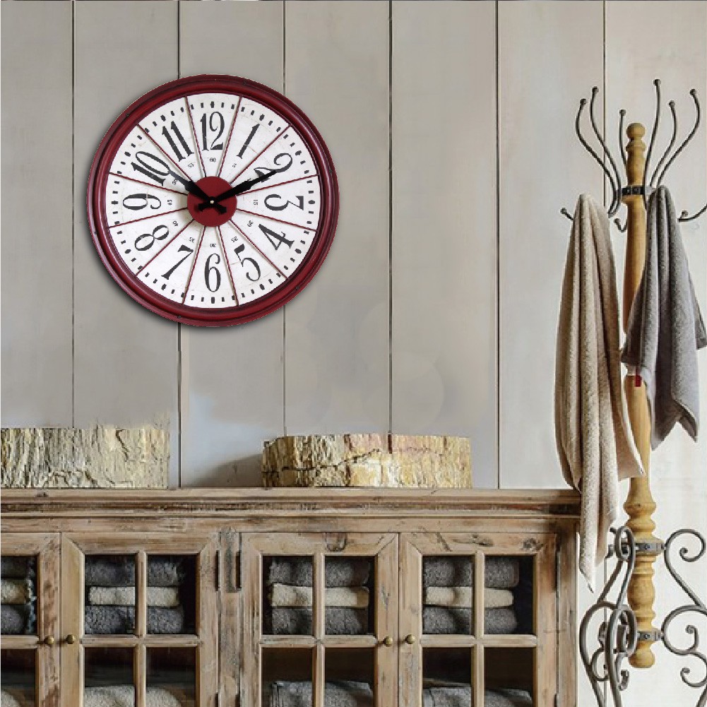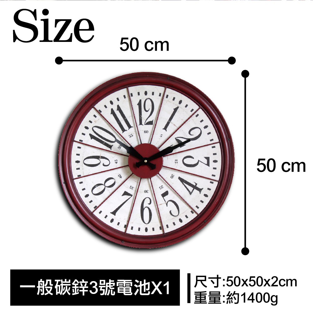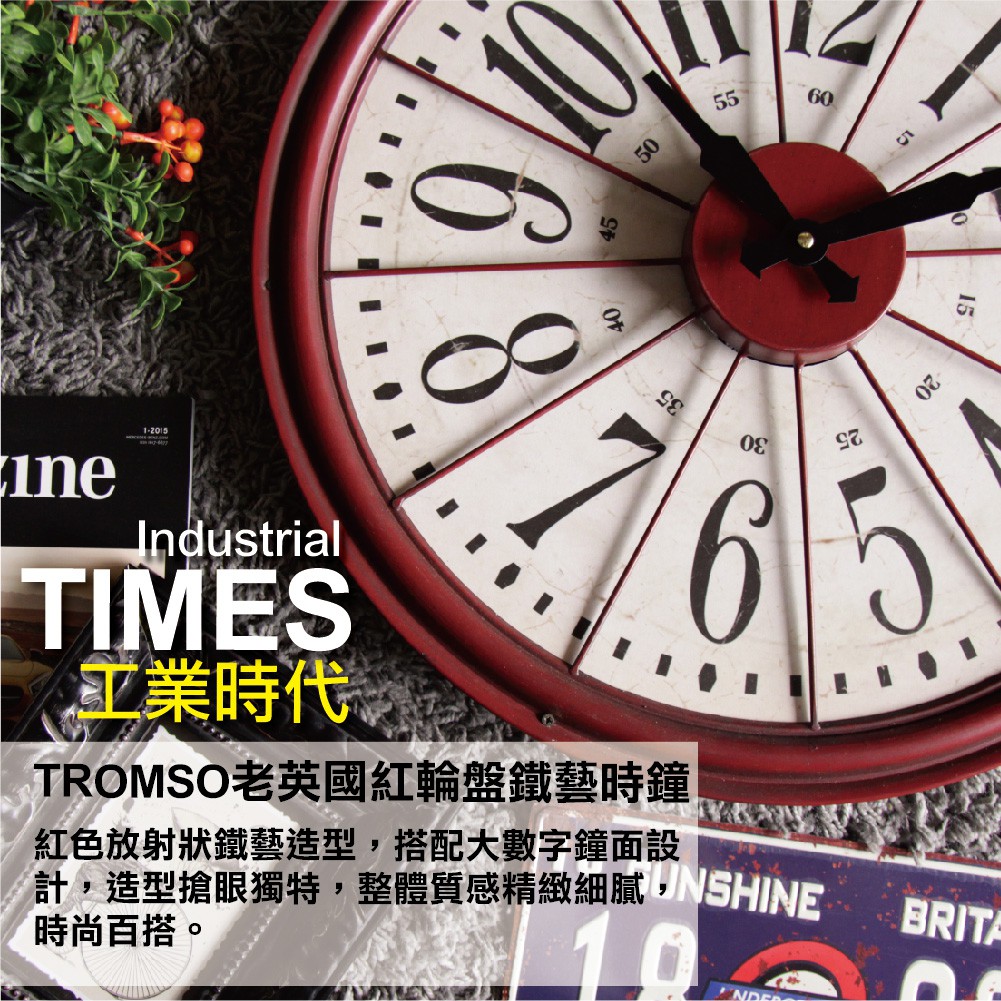 工業時代-老英國紅輪盤鐵藝時鐘 50cm【TROMSO】/台灣現貨 設計掛鐘 loft 紅色 輪盤【H0310086】