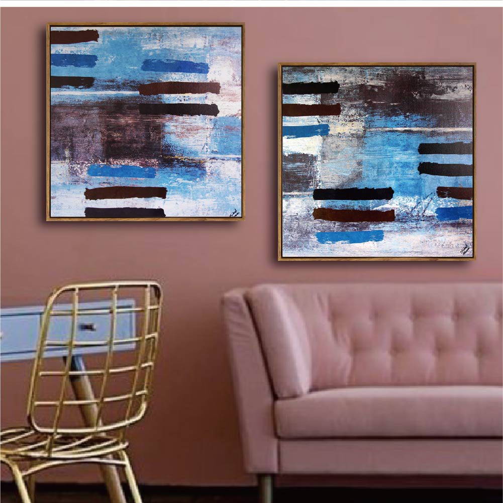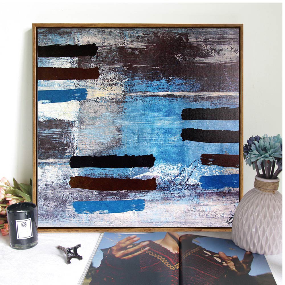 北歐抽象板畫有框畫 板畫有框畫 WA050探索藍調【TROMSO】台灣現貨 木框 油畫 室內設計 【H0313106
