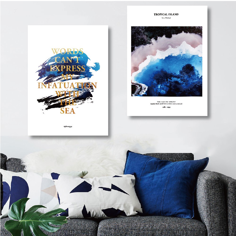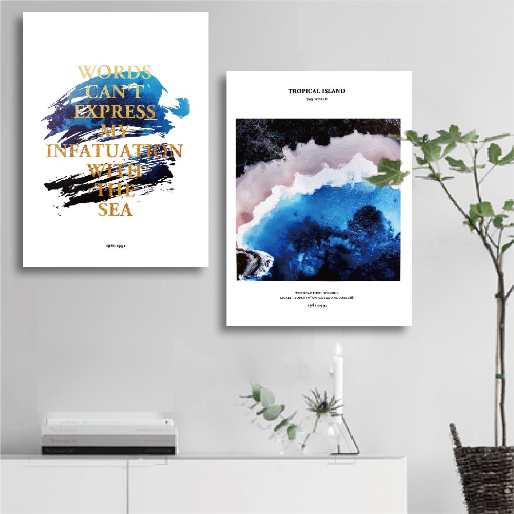 實木棉布無框畫 暢藍海洋 / W250 40x55cm【TROMSO】台灣現貨 兩幅一組蔚藍客廳掛畫【H0309333】