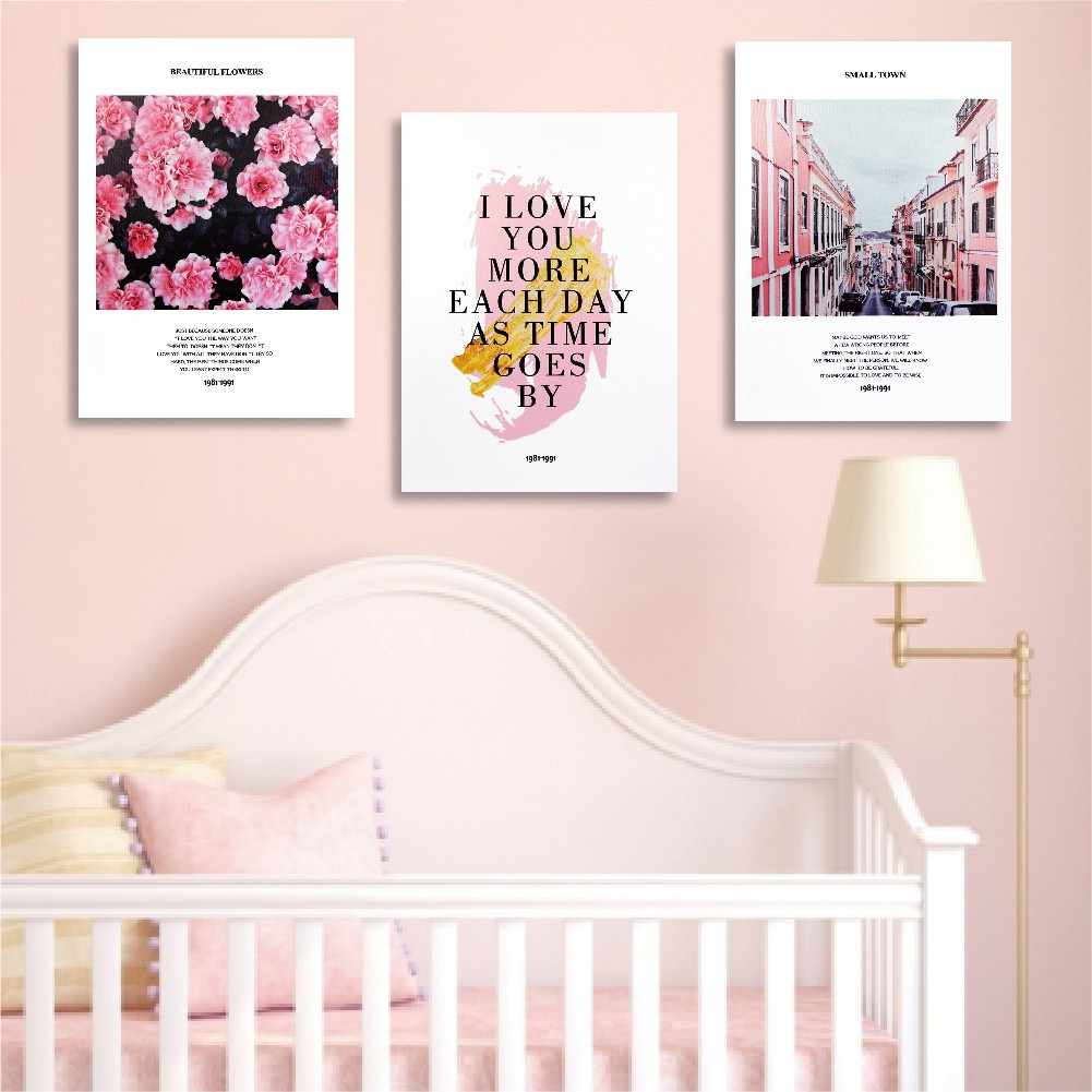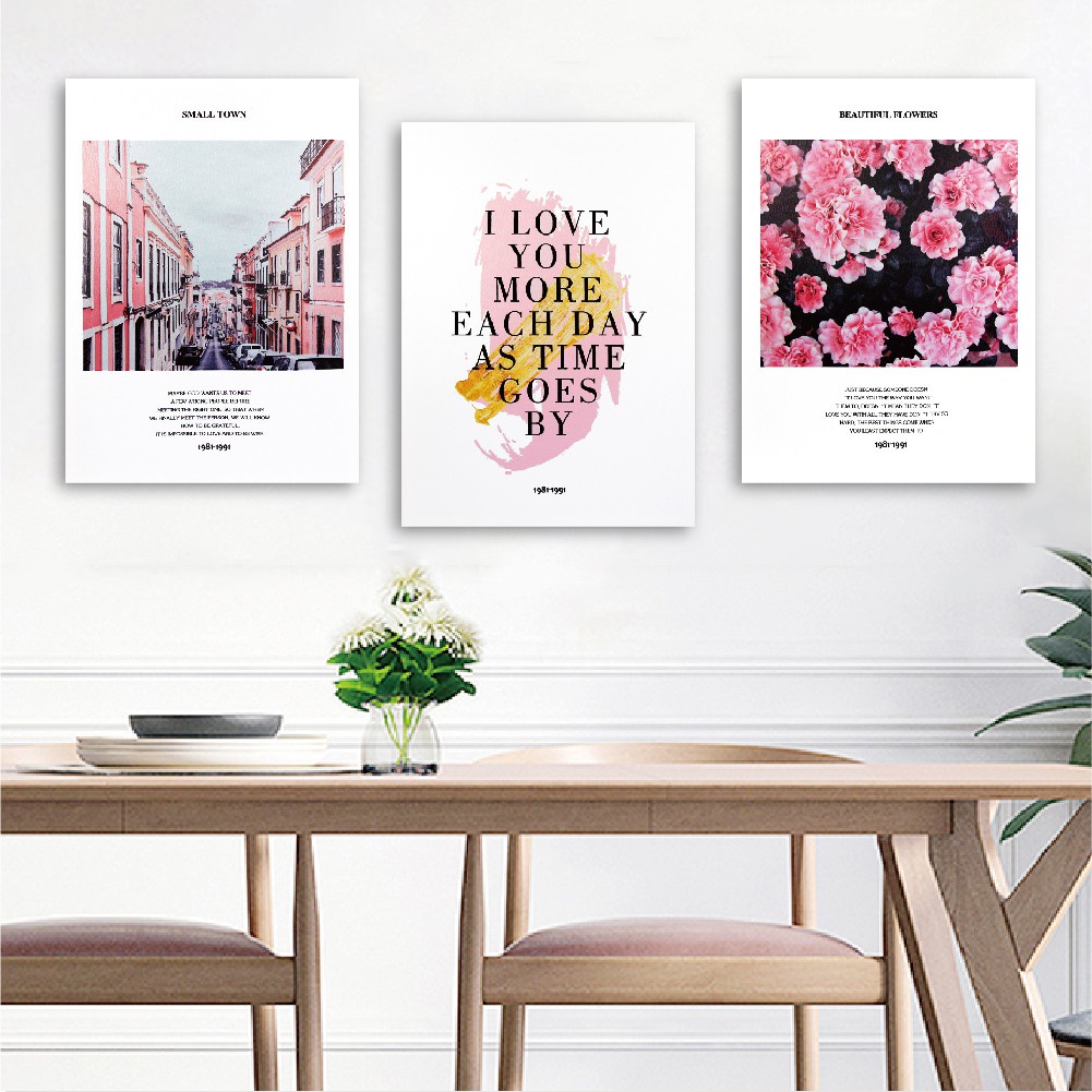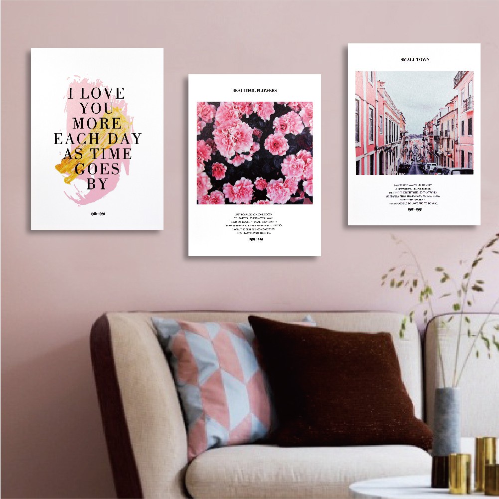 實木棉布無框畫 粉紅優雅 / W253 40x55cm【TROMSO】台灣現貨 三幅一組花朵客廳掛畫【H0309336】