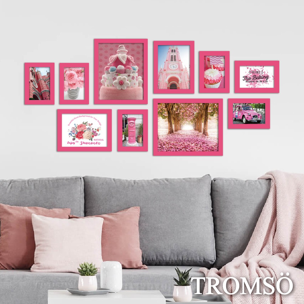 相框牆 10框 附照片【TROMSO】/台灣現貨 純白 黑白 桃白 原木 大理石 刷銀 相片 畫【H0308021】
