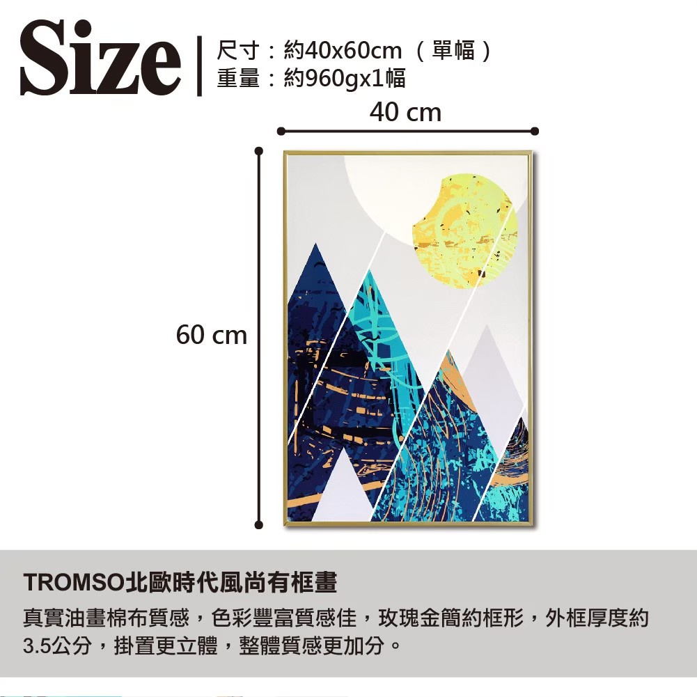 北歐有框畫 【TROMSO】/ WA118山嵐望月 40x60cm 台灣現貨 幾何文青小清新臥室【H0313218】