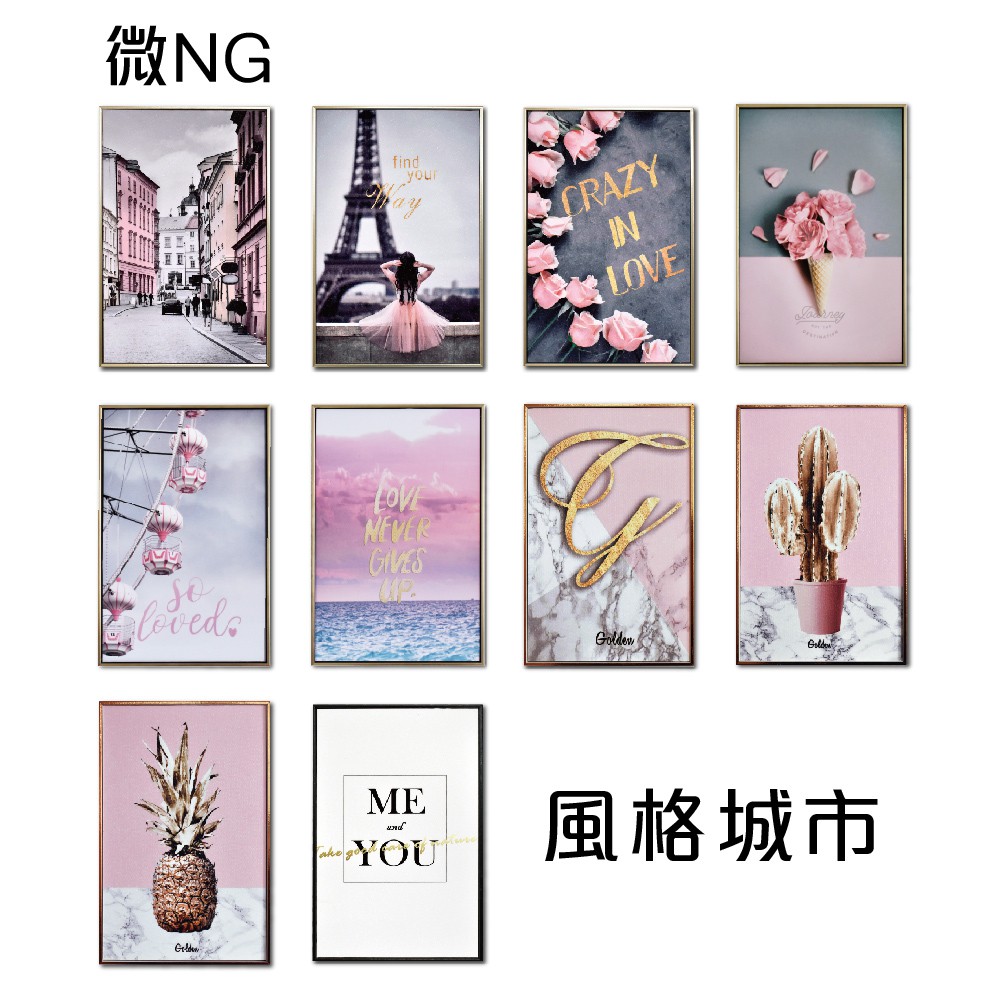 微NG 板畫 有框畫 19x29cm 居家佈置 框畫 掛畫 直播牆 北歐風 花草 城市 餐廳 塗鴉 插畫 粉色系 無印風