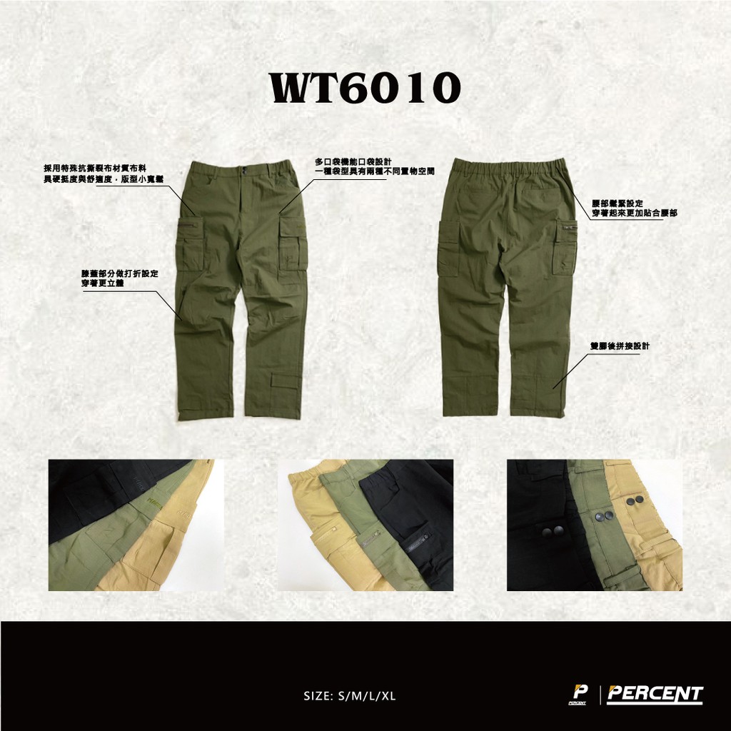 【PERCENT】WT6010 多口袋工作長褲 褲管可調節 工裝 寬褲 休閒 抗撕裂 長褲 工裝褲 藤原本舖