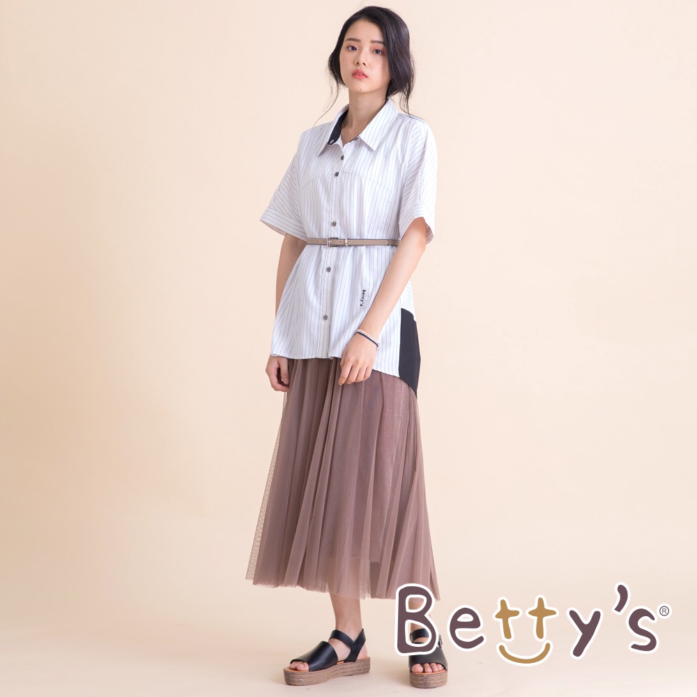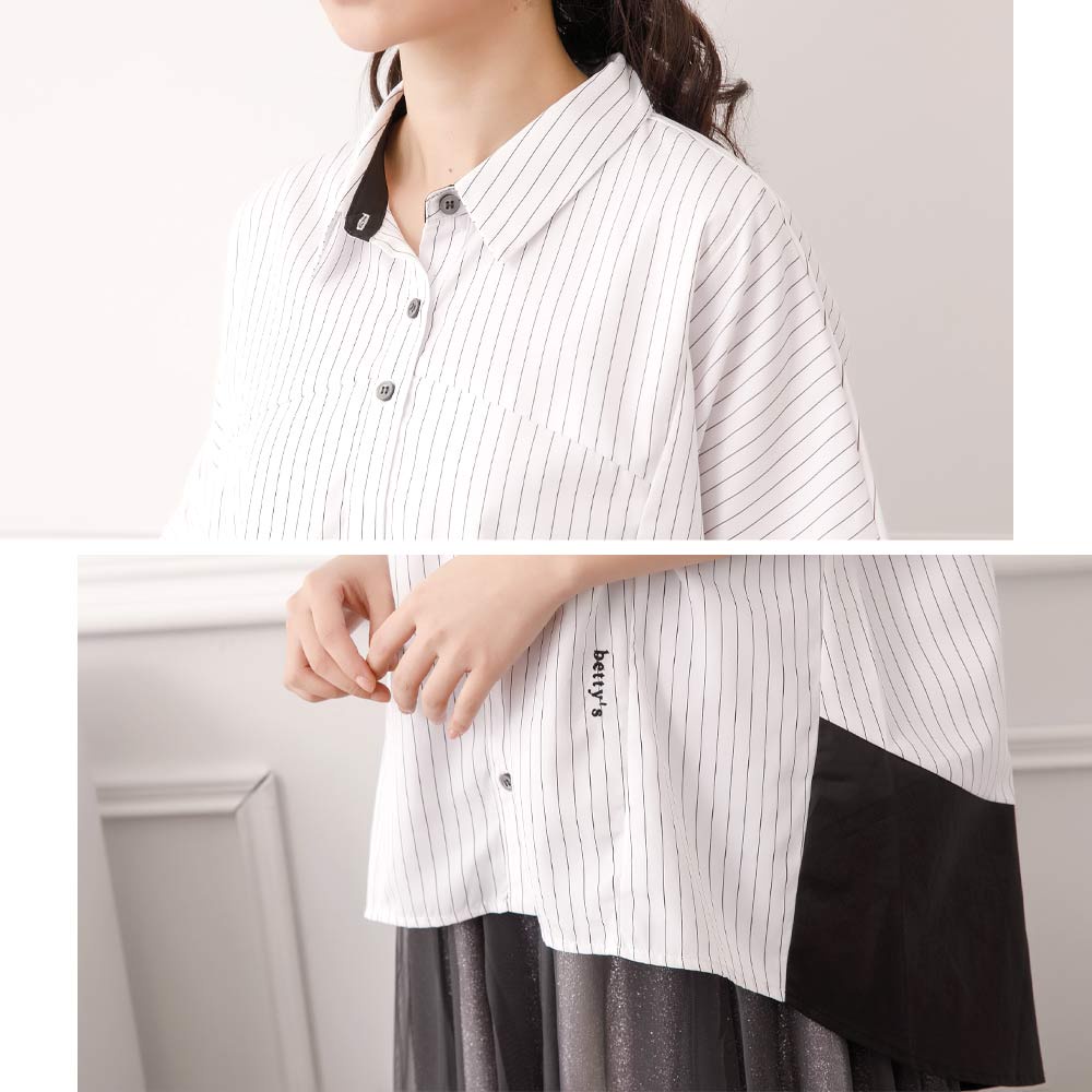 betty’s貝蒂思(05)條紋下襬拼布襯衫(白色)