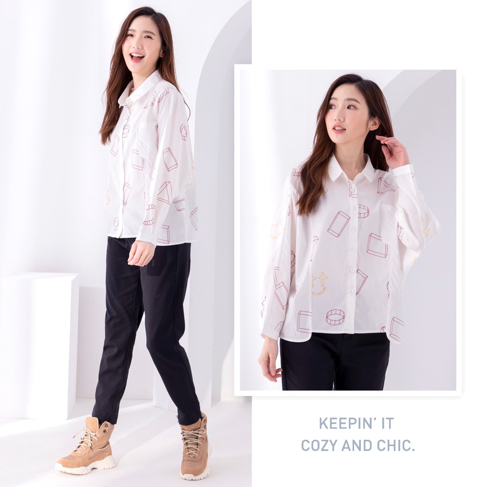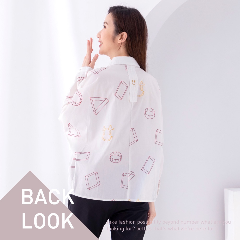 betty’s貝蒂思(05)幾何印花寬版襯衫(白色)