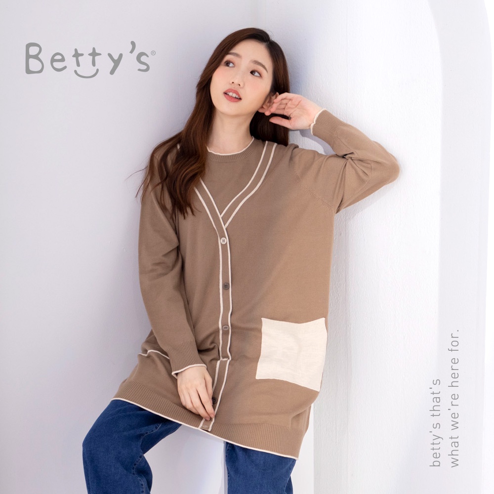 betty’s貝蒂思(05)跳色長板針織罩衫(深卡其)