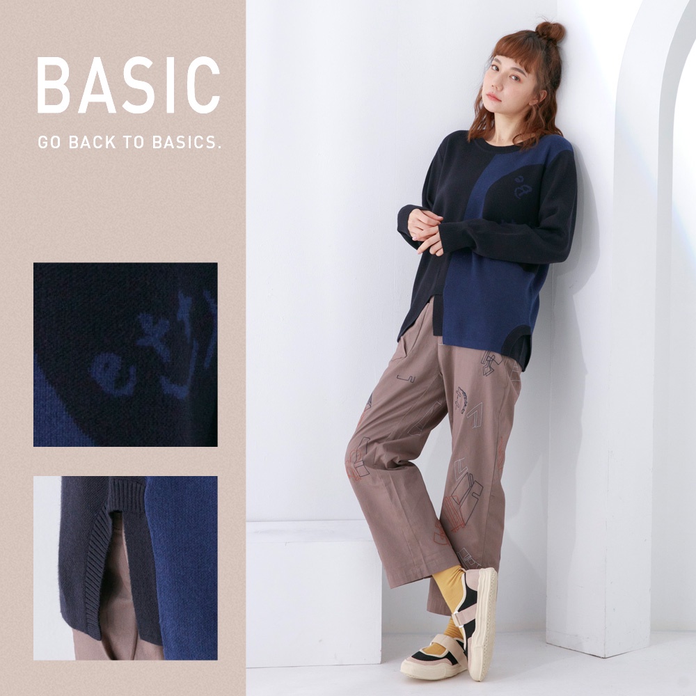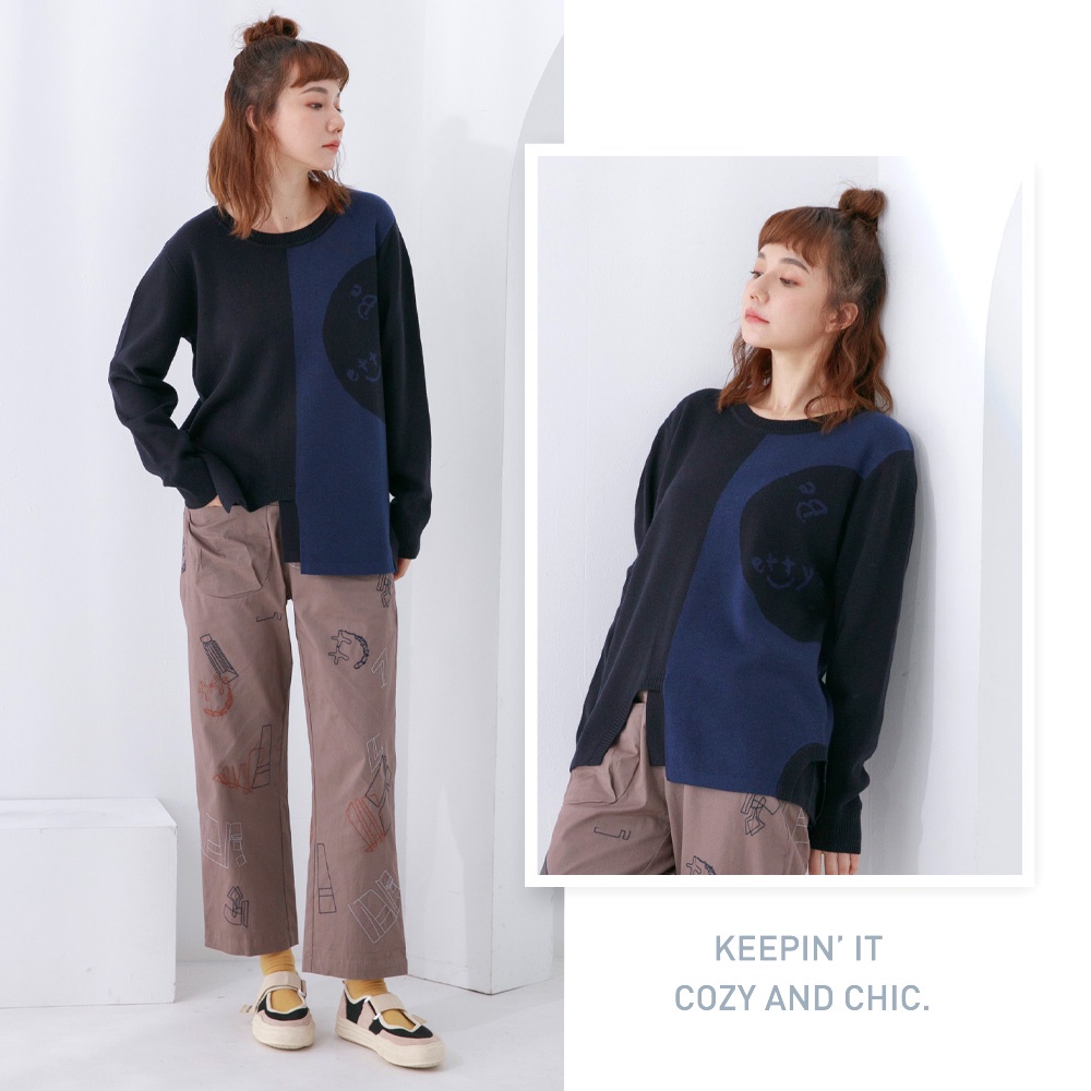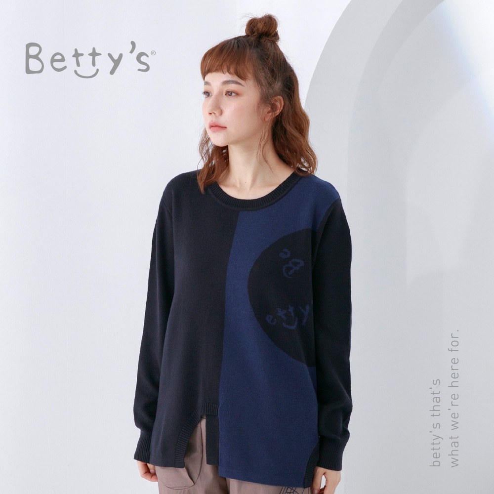 betty’s貝蒂思(05)圓領拼色質感毛衣(深藍)