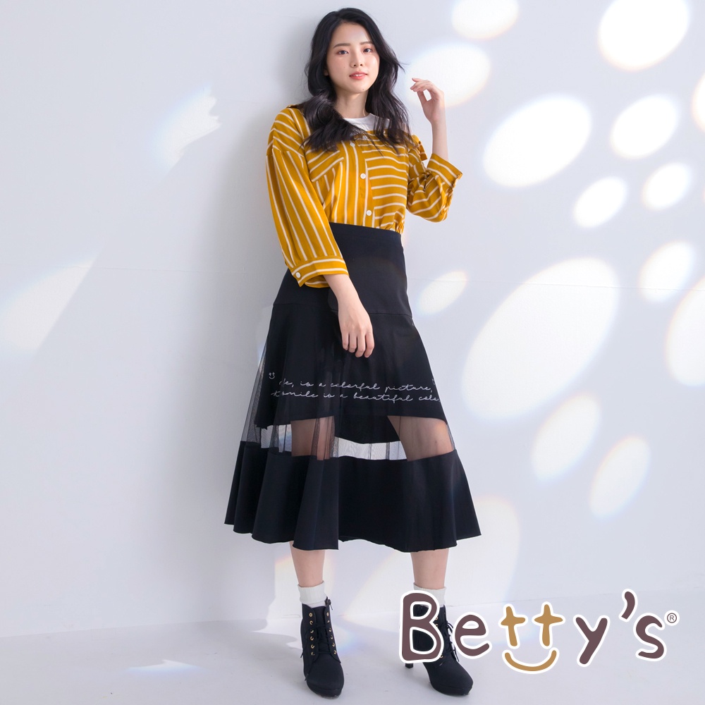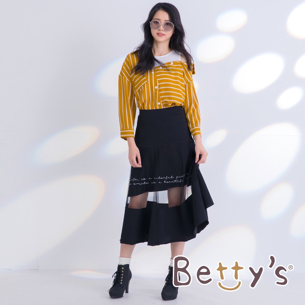 betty’s貝蒂思(05)不規則設計條紋雪紡襯衫(土黃)