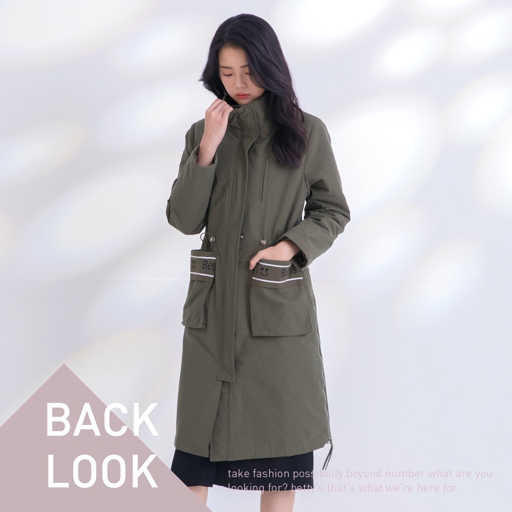 betty’s貝蒂思(05)長版鋪棉LOGO立領大衣(軍綠)